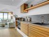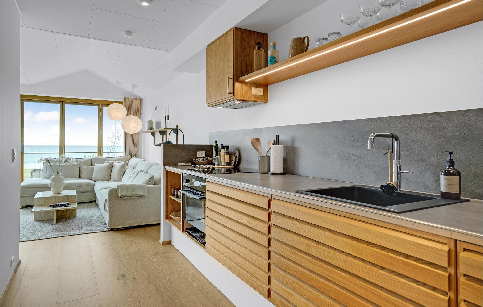 Der er lagt op til nogle fantastiske dage på Fyn, hvor I kan se frem til en helt igennem vidunderlig beliggenhed ved Kertemindebugten. Her ligger denne flotte lejlighed, som er indrettet med gode kvalitetsløsninger overalt. Der er lagt vægt på naturmaterialer samt en behagelig farveskala og store lysindfald fra vinduerne, så I får en rolig og harmonisk ramme om jeres ophold. Bedst af alt er den forrygende udsigt til bugtens blå vand, Storebæltsbroen og aktiviteterne på vandet, som kan I kan beundre over madlavningen, mens I flader ud i stuen, og når I drikker en kop kaffe på den store altan om morgenen.