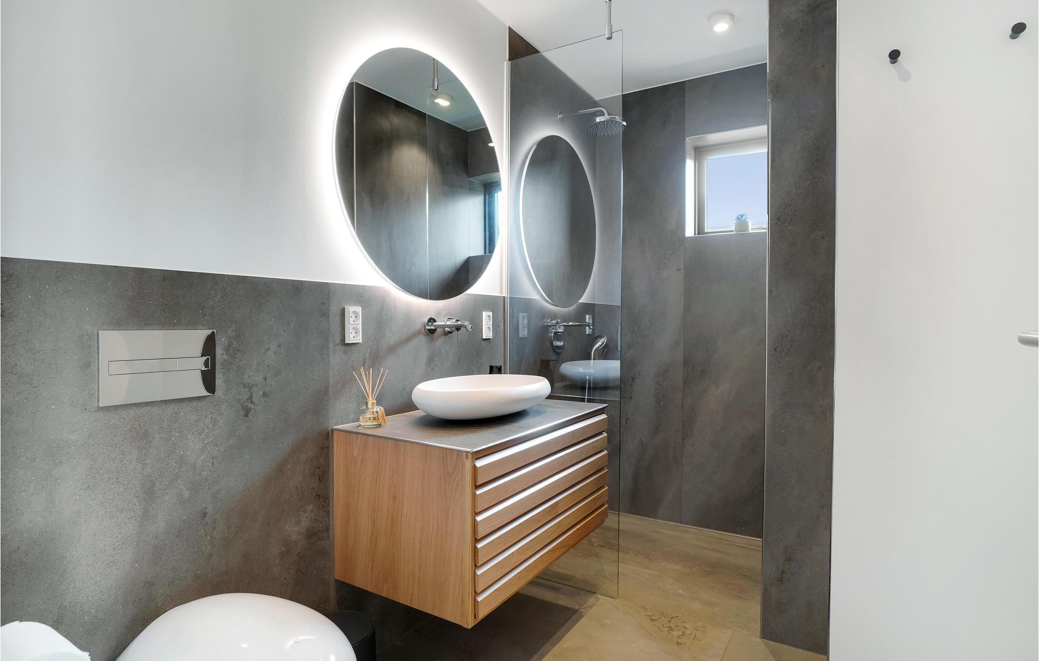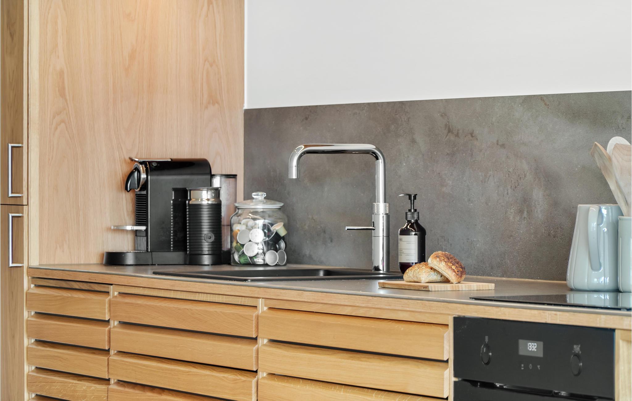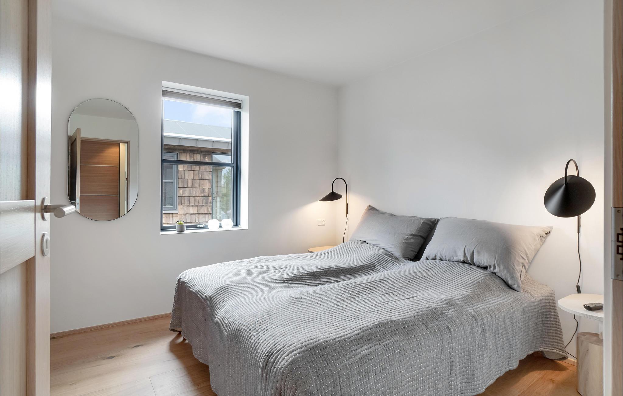 Velkommen til denne flotte lejlighed, som er indrettet med gode kvalitetsløsninger overalt. Der er lagt vægt på naturmaterialer samt en behagelig farveskala og store lysindfald fra vinduerne, så I får en rolig og harmonisk ramme om jeres ophold. Glæd jer til at nyde hinandens selskab i det åbne køkken i forbindelse med spise- og opholdsstuen, hvor terrassedørene kan åbnes helt, så terrasse og stue bliver ét. Bedst af alt er den forrygende udsigt til bugtens blå vand, som kan I kan beundre over madlavningen, mens I flader ud i stuen, og når I drikker en kop kaffe på altanen om morgenen.