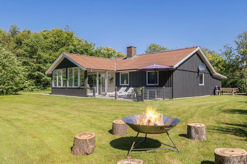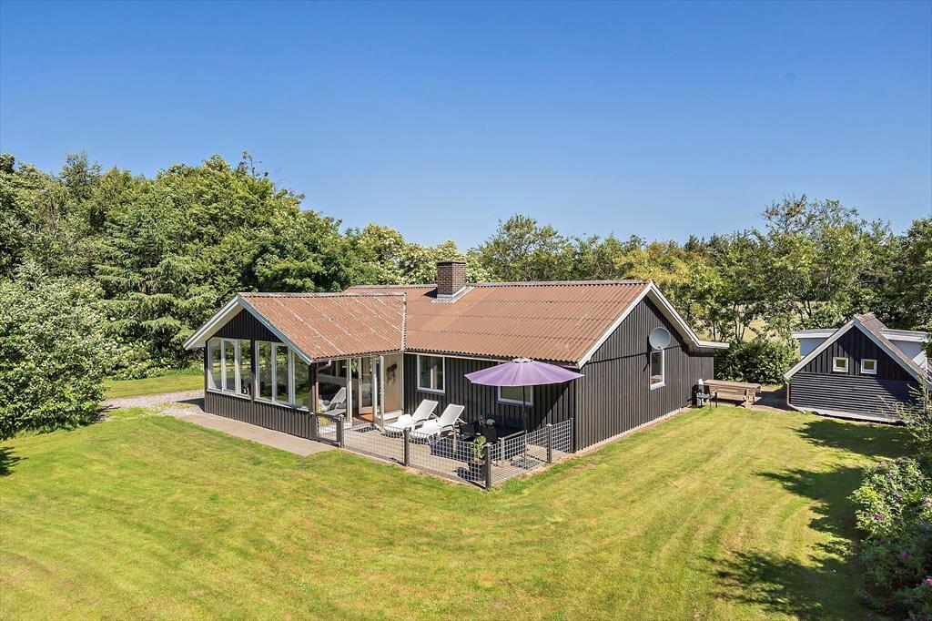 Dette hyggelige sommerhus i Nr. Fjand byder jer velkommen med god plads til både familie og hund. Husets hjerte er det store, lyse køkken-alrum, hvor samtalerne nemt flyder på tværs – uanset om der bliver tryllet i køkkenet, eller om I slapper af i sofaen foran den knitrende brændeovn.