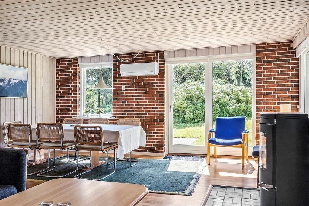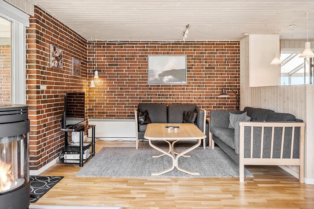 Dette dejlige sommerhus i Nr. Fjand byder på en helt fantastisk panoramaudsigt ud over klitterne og Nissum Fjord – en udsigt, der kan nydes både inde og ude. Her er god plads til hele familien og familiens to hunde, så alle kan føle sig hjemme. Det kombinerede køkken og opholdsrum er lyst og hyggeligt med komfortable møbler, lyse trælofter og stemningsfulde brune murstensvægge, der skaber varme og charme. Her er der rig mulighed for både fælles madlavning og afslapning, mens I nyder udsigten og hinandens selskab. Udestuen fungerer som en skøn forlængelse af opholdsrummet og giver jer mulighed for at nyde lyset og naturen – også når aftenen bliver køligere.