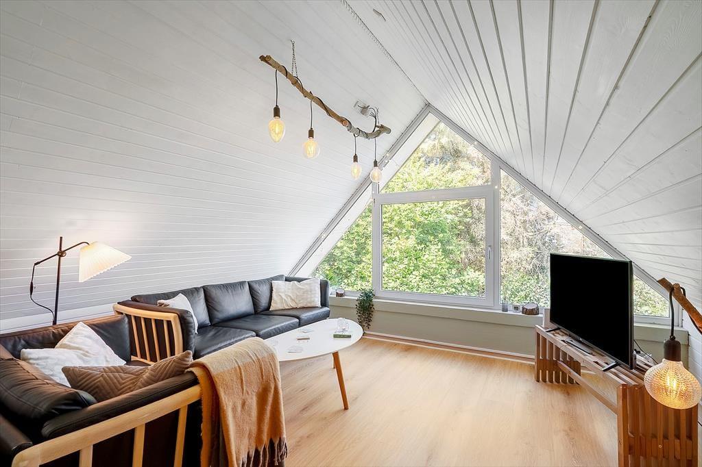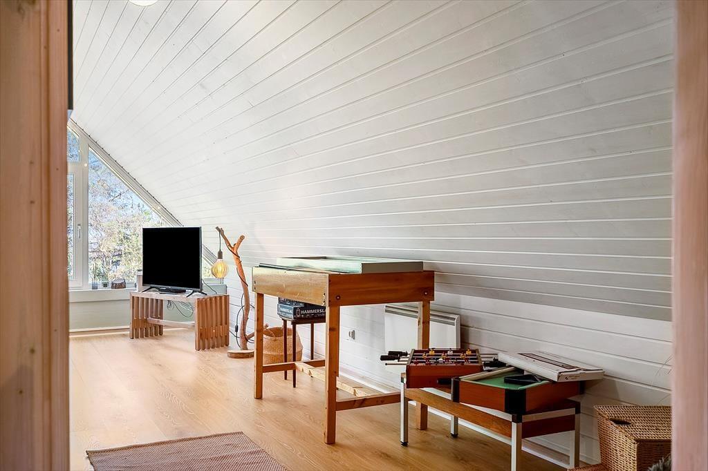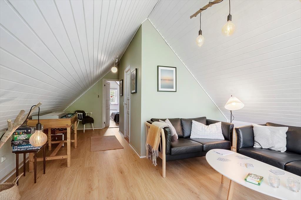 På 1. sal venter en skøn TV-stue, hvor lyset strømmer ind gennem de store vinduer og giver jer en smuk udsigt over fjorden. Heroppe finder I også to rummelige og hyggelige værelser – ideelle til både børn og gæster.