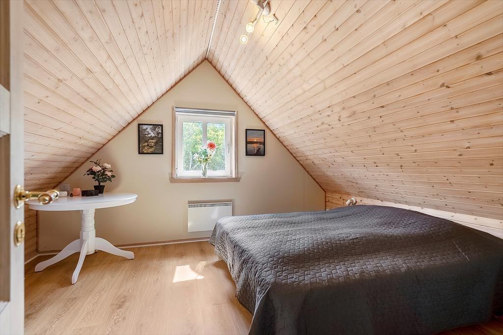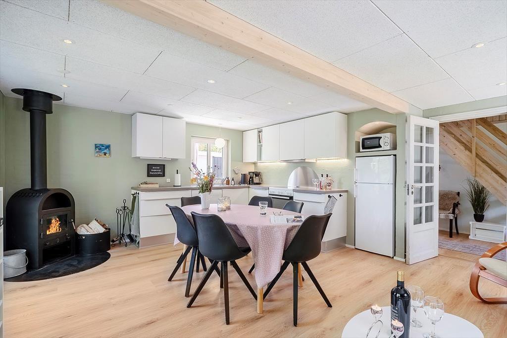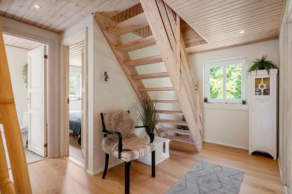 I stueetagen træder I ind i et lyst og indbydende rum, hvor det moderne køkken ligger i åben forbindelse med en hyggelig opholdsstue og spiseafdeling. Her kan I nyde varmen fra både varmepumpe og brændeovn – perfekt til alle årstider. Badeværelset byder på ren luksus med både spa, sauna og separat brus, og I har også et lækkert soveværelse med dobbeltseng i denne etage.