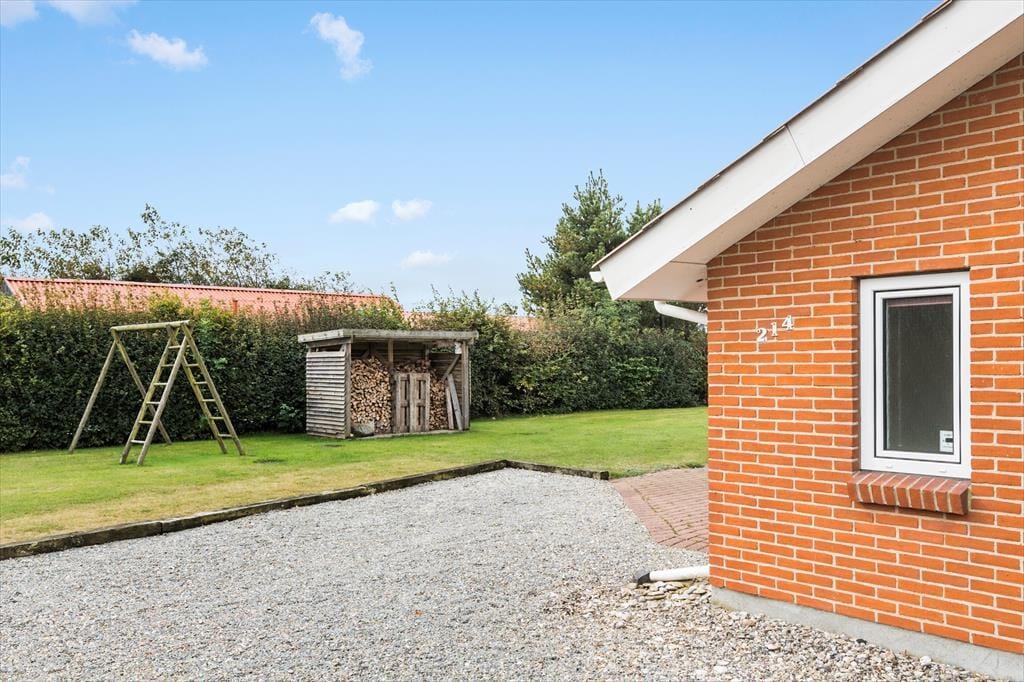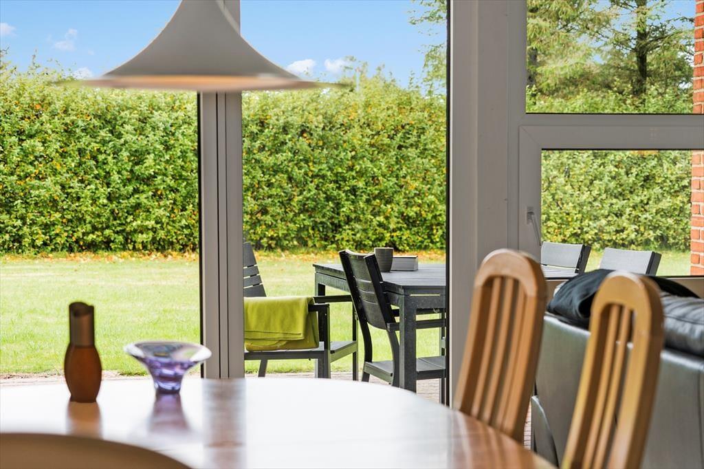 Grunden omkring huset er stor og grøn med masser af plads til leg, boldspil og hyggelige stunder i det fri. Træerne omkring grunden giver en dejlig følelse af privatliv, og her kan I virkelig koble af i fred og ro. På den overdækkede terrasse kan I nyde aftensmaden, mens solen går ned – måske med et godt glas vin i hånden og lyden af naturen omkring jer.