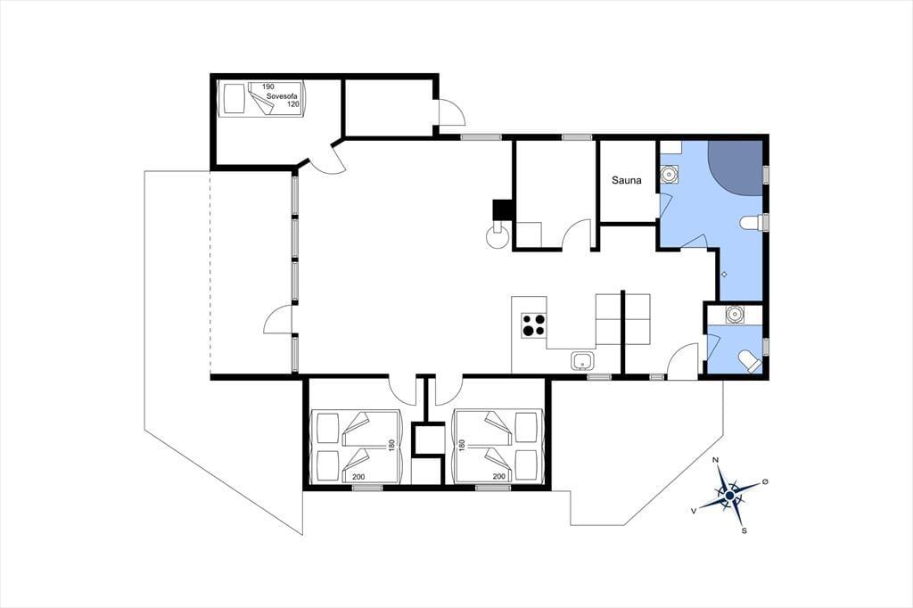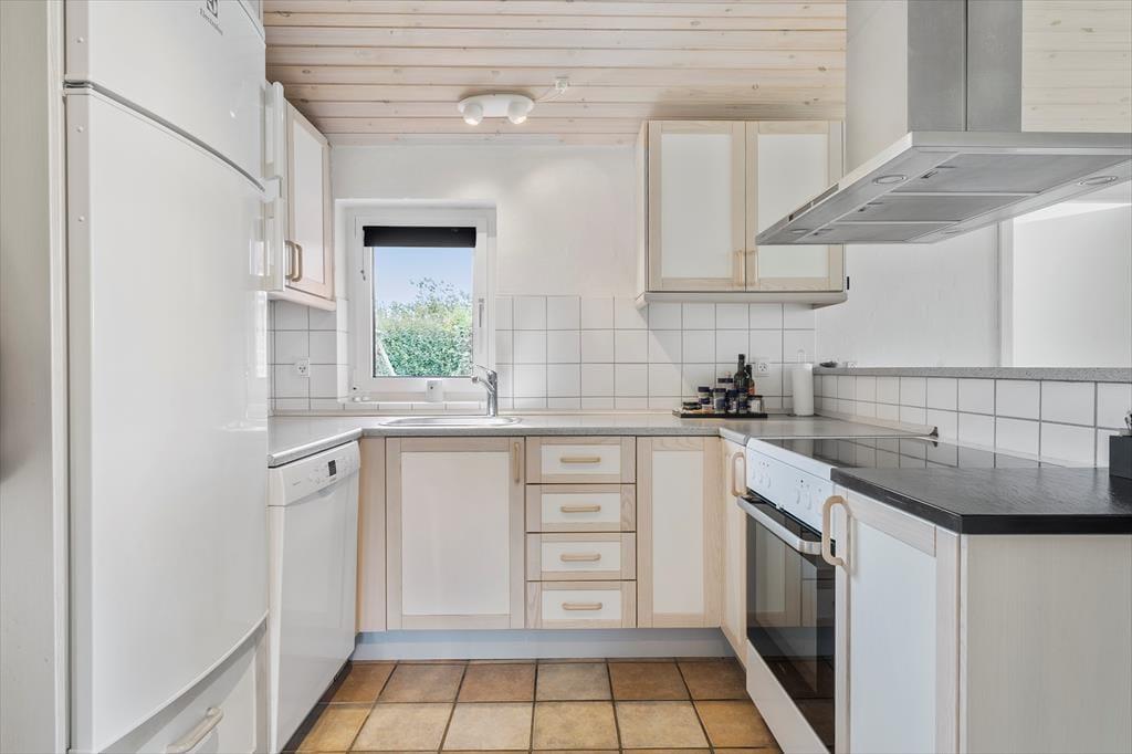 Midt i det skønne naturområde på Helmklit ligger dette dejlige sommerhus, hvor I kan nyde ferien i rolige og smukke omgivelser. Huset har et stort vinduesparti, der lader lyset strømme ind og skaber en lys og luftig atmosfære. Her er dejligt højt til loftet, og køkkenet ligger i åben forbindelse med stuen, så man kan hygge om maden, mens de andre slapper af foran brændeovnen. Når I trænger til lidt ekstra forkælelse, kan I tænde op i spabadet og bagefter nyde varmen i saunaen – ren afslapning for både krop og sjæl.