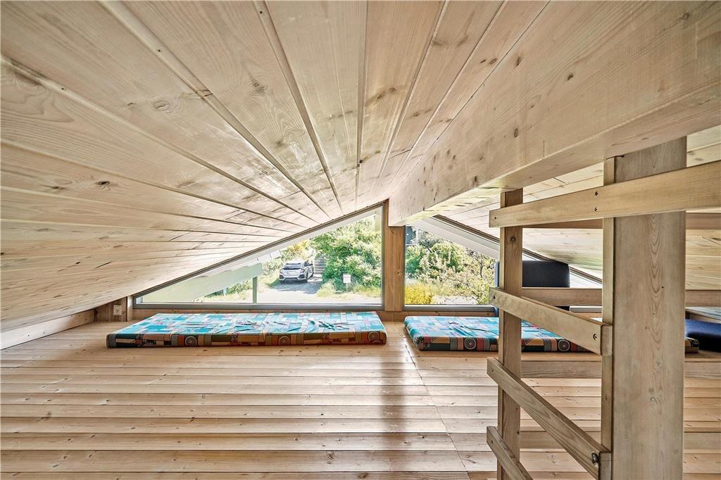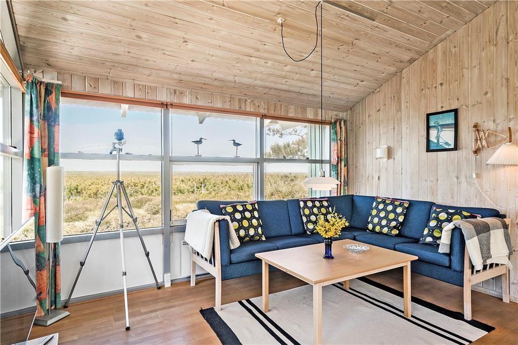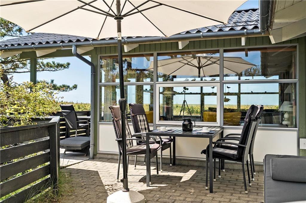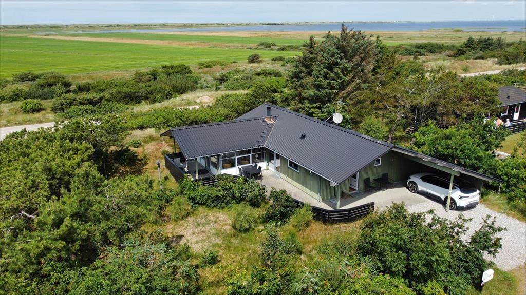 Forestil jer at vågne op til en betagende panoramaudsigt over fjord og klitter – direkte fra jeres feriehus midt i naturen. Her kan I nyde roen og solen på de delvist overdækkede terrasser med gode læ forhold, mens grillen varmer op til aftenens måltid. Slap af i komfortable havemøbler eller læn jer tilbage i solsengene. Børnene vil elske sandkassen og gyngen, mens bilen står trygt i carporten. Her får I den perfekte kombination af naturoplevelser, komfort og børnevenlige rammer – et sted, hvor ferieminderne venter på at blive skabt.