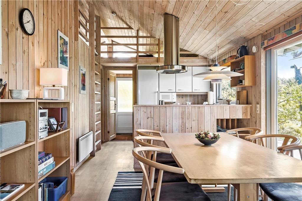 Midt i huset finder I en moderne brændeovn og varmepumpe, som sikrer varme og komfort året rundt. Køkkenet er fuldt udstyret, så I nemt kan trylle lækre måltider frem – og fra køkkenet fører en stige op til en charmerende hems, hvor børnene kan lege eller slappe af.