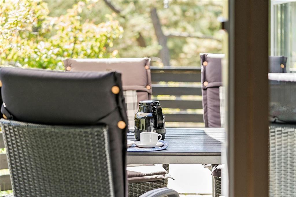 Velkommen til jeres næste ferieoase – et meget dejligt og velholdt træhus. Her får I en dejlig, lys og indbydende atmosfære med store vinduespartier, trægulve og klassisk indretning i høj kvalitet. Det åbne køkken hænger naturligt sammen med spiseområdet og stuen, hvor I kan samles til hyggelige stunder – og fra alle rum er der direkte adgang til den solrige, sydvendte terrasse.