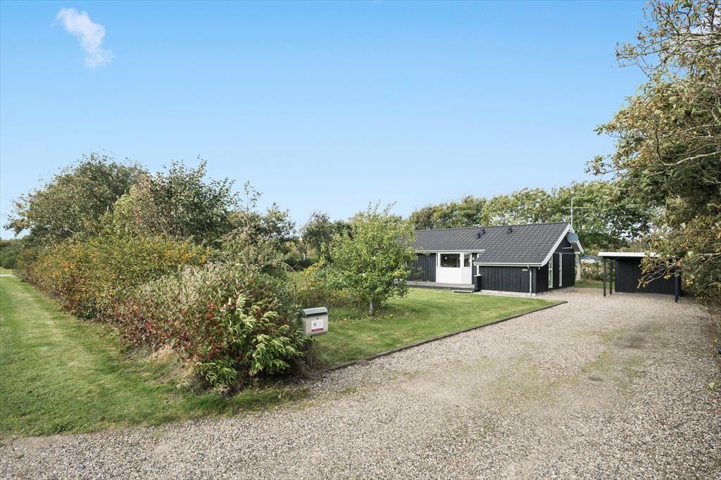 Huset ligger på en stor, lukket grund omgivet af høje træer, der skaber en fredelig og ugenert oase. Her er plads til leg, boldspil og afslapning – slå jer ned på terrassen i solen, tænd op i grillen og nyd aftenen ved den udendørs pejs. De syd- og vestvendte terrasser giver læ og perfekt udsyn til solnedgangen, mens haven indbyder til både aktivitet og ren feriehygge.