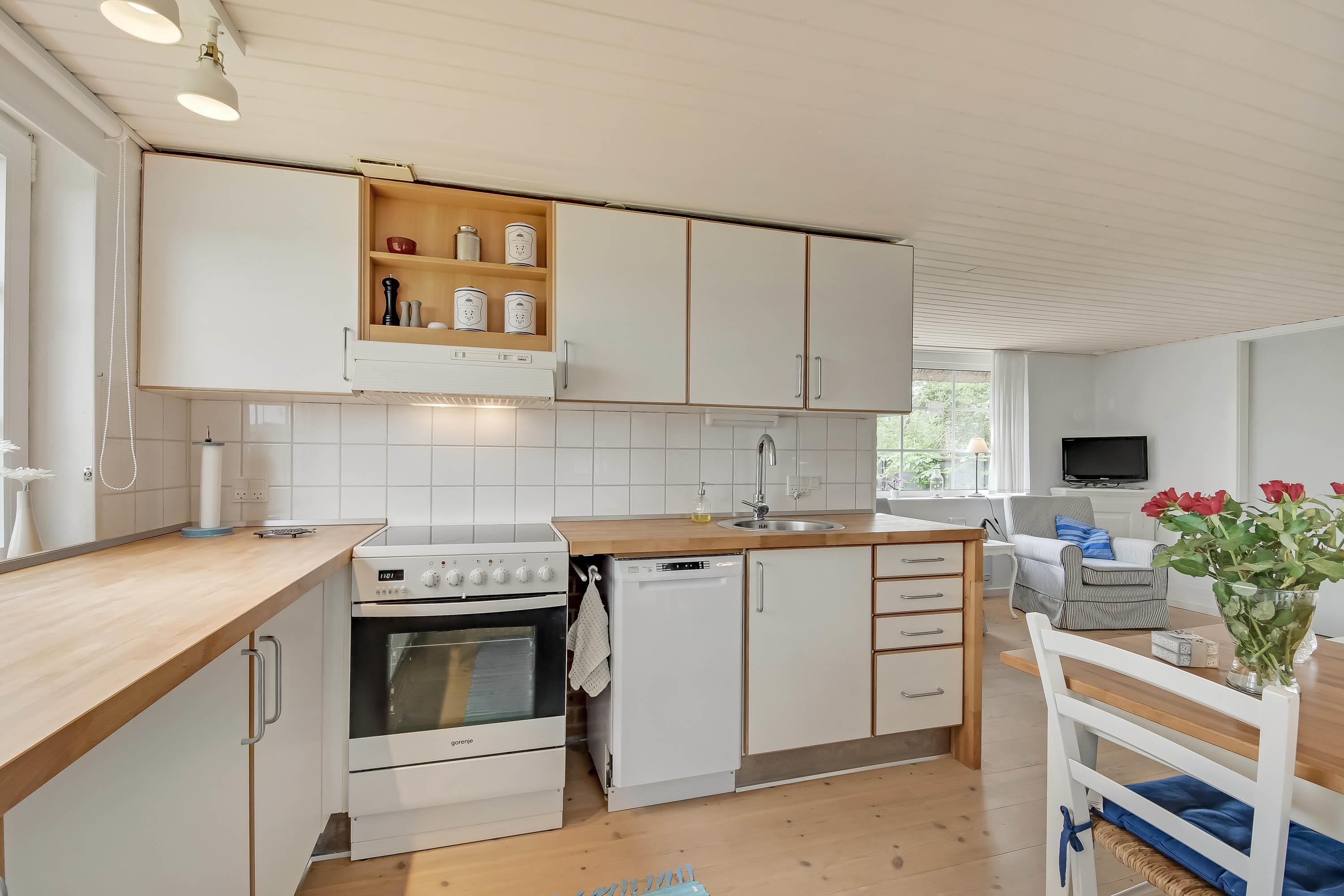 Lyst og pænt køkken med lille kig til Nissum Fjord