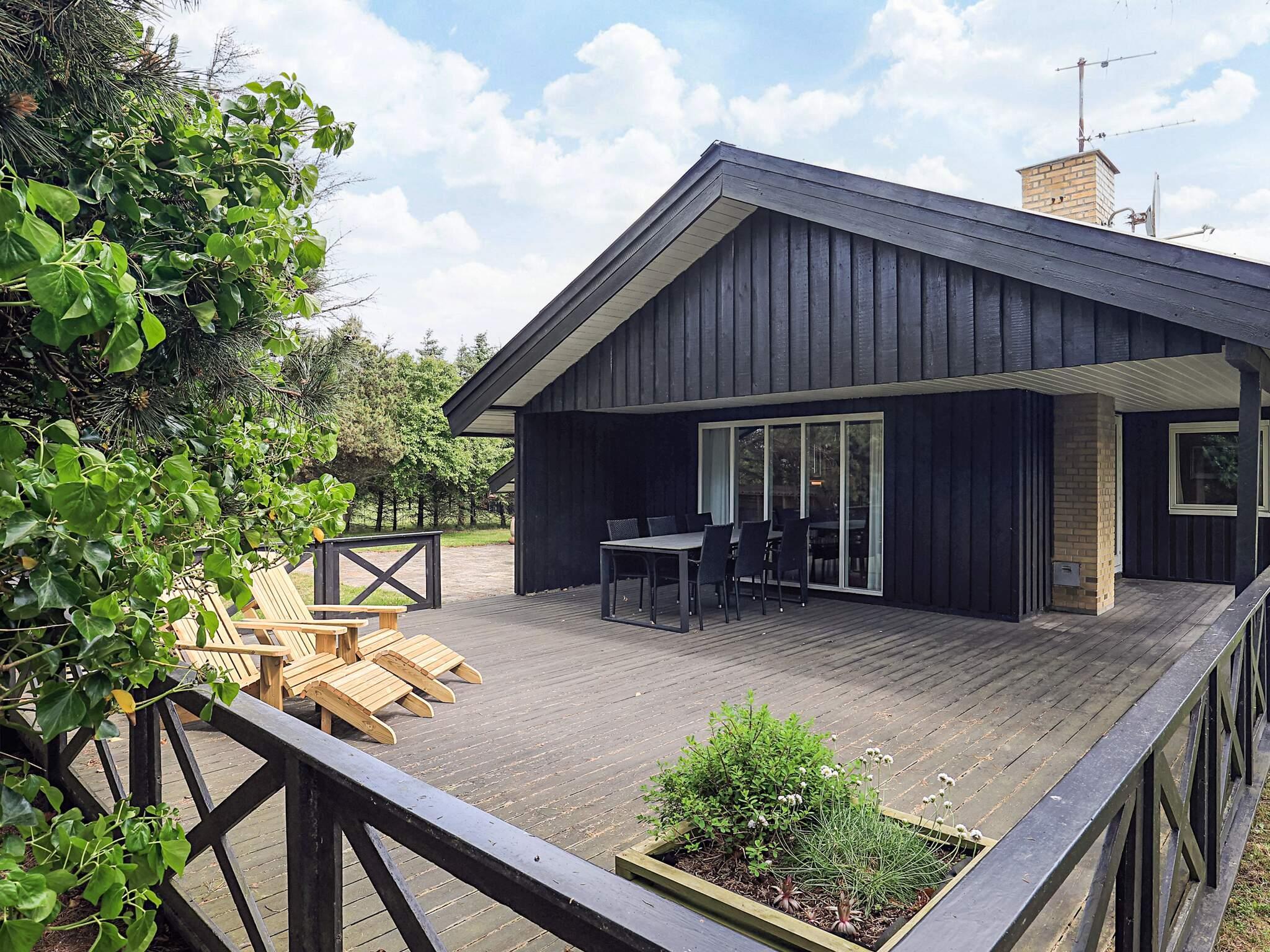 Udenfor byder huset på en overdækket terrasse, der er tilgængelig fra stuen, samt endnu et overdækket område ved indgangen. Ejendommen ligger på en 1.719 m² stor naturgrund, der giver rigelig plads til, at børn kan lege og udforske sikkert. Omgivet af frodige grønne områder byder boligen på privatliv, mens den stadig er tæt på stranden og den lokale natur. Dens kombination af indendørs faciliteter, udendørs rum og nærhed til en rolig kystlinje gør det til et ideelt valg for familier eller grupper, der søger en afslappende ferie i Danmark.