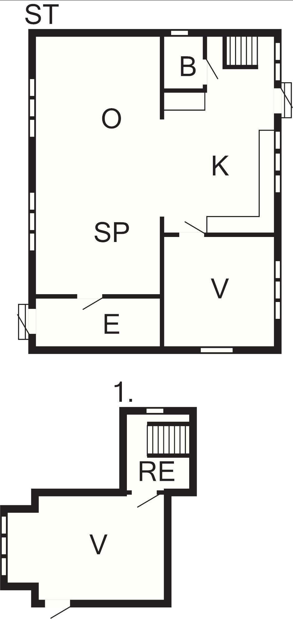 Villaen er fordelt på to etager og har entré, stue, køkken-alrum, badeværelse og soveværelse i stueplan. Køkken-alrummet er villaens omdrejningspunkt og er kendetegnet ved sit utroligt flotte træloft med fritlagte bjælker, som går igennem næsten hele stueetagen, et rigtig flot køkken, samt en bordplade, der matcher loftet. Alle hvidevarer medfølger. Køkkenet og stuen nyder skønt lysindfald gennem sprossevinduerne. Soveværelse med dobbeltseng.