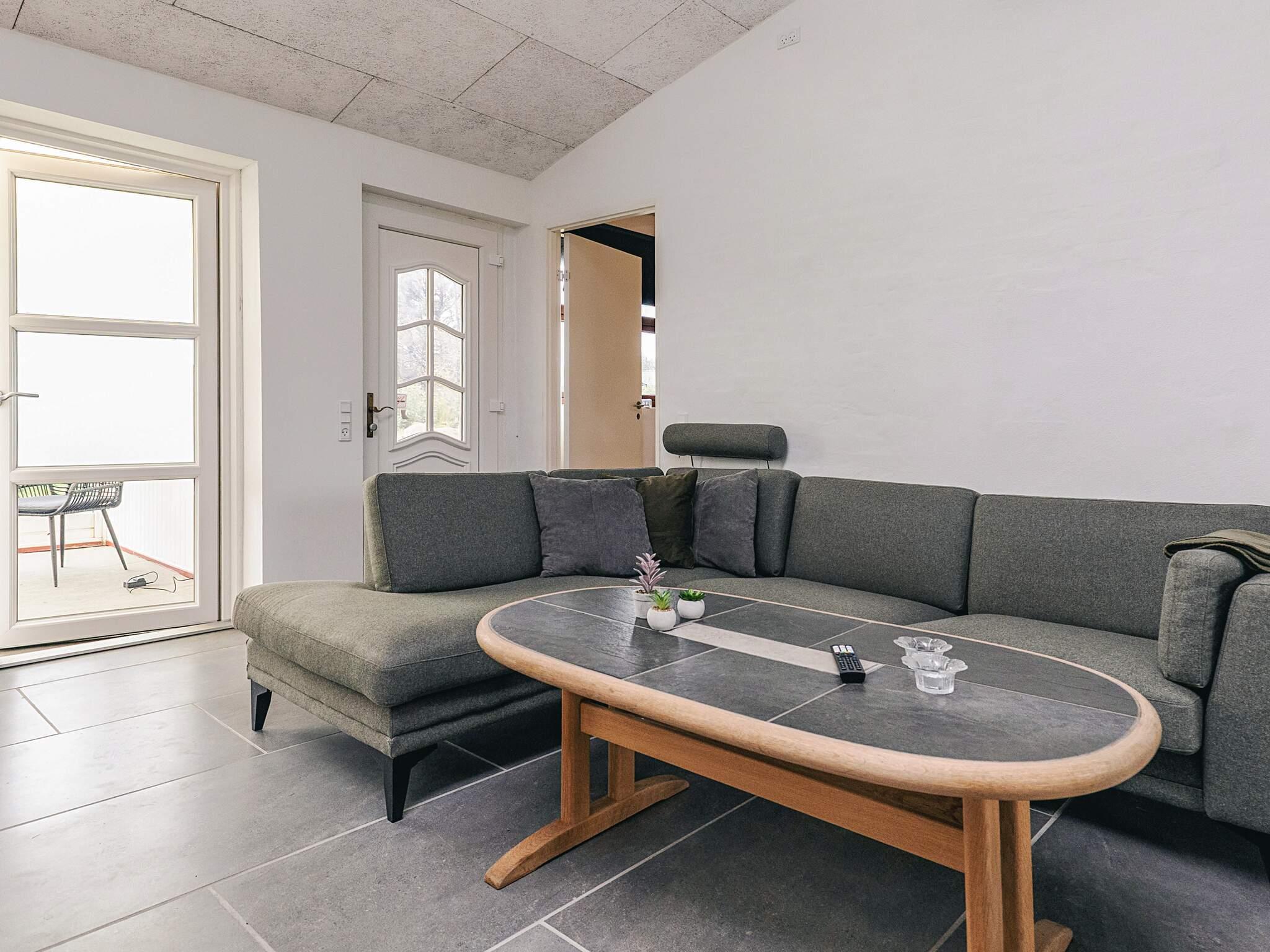 Indretningen byder på en lys og åben stue med spiseplads og sofahjørne, hvor man kan samles til hyggelige stunder. Den flotte væghængte brændeovnen sørger for hyggen og kan nydes i hele alrummet. Køkkenet er praktisk indrettet med alt nødvendigt udstyr til ferien, som ekstra luksus kan nævnes opvaskemaskine, airfryer og mikroovn. Sommerhuset har i alt 3 soveværelser fordelt på 1 værelse med dobbeltseng, 1 værelse med 2 senge og et værelse med køjeseng.