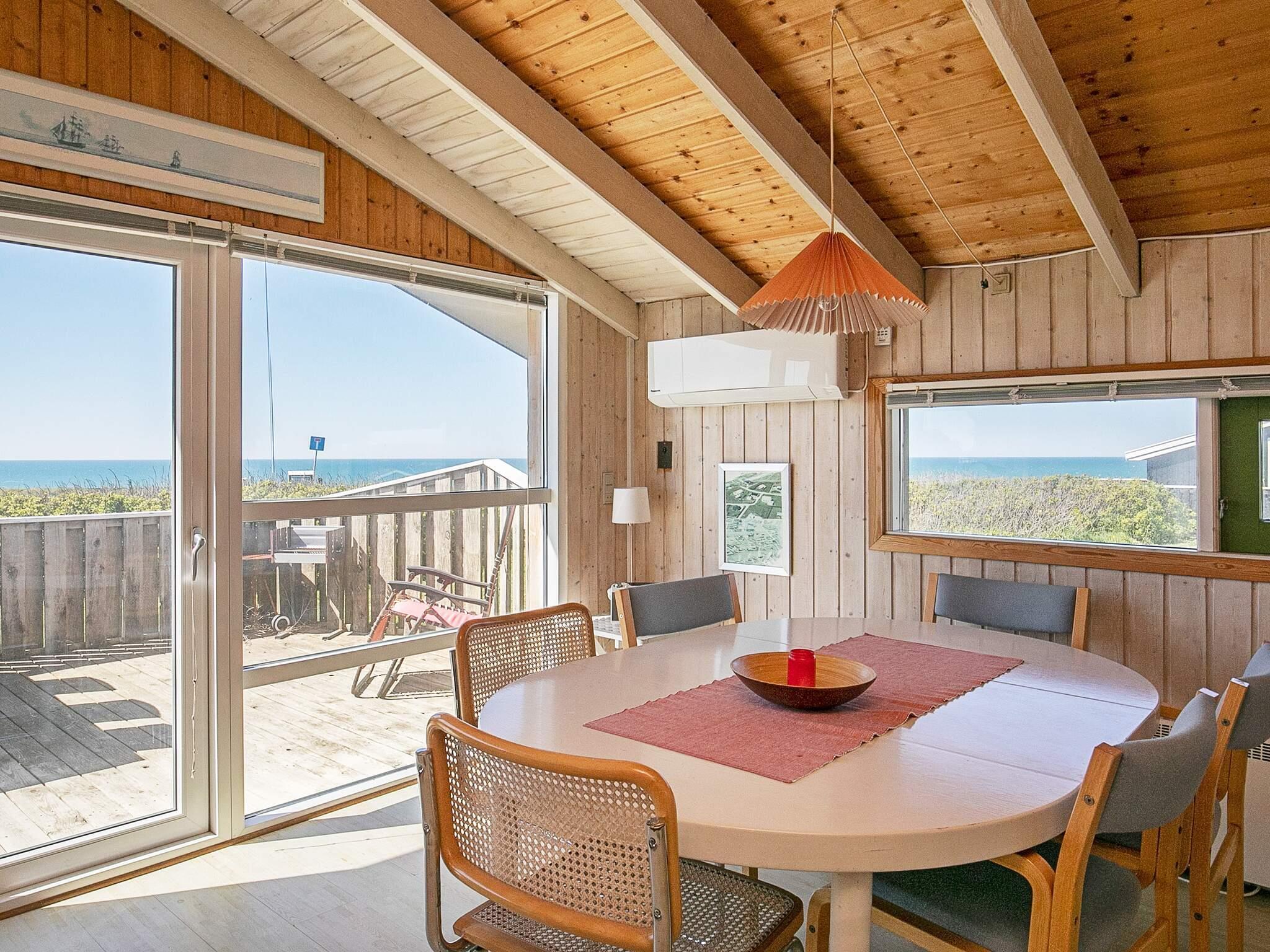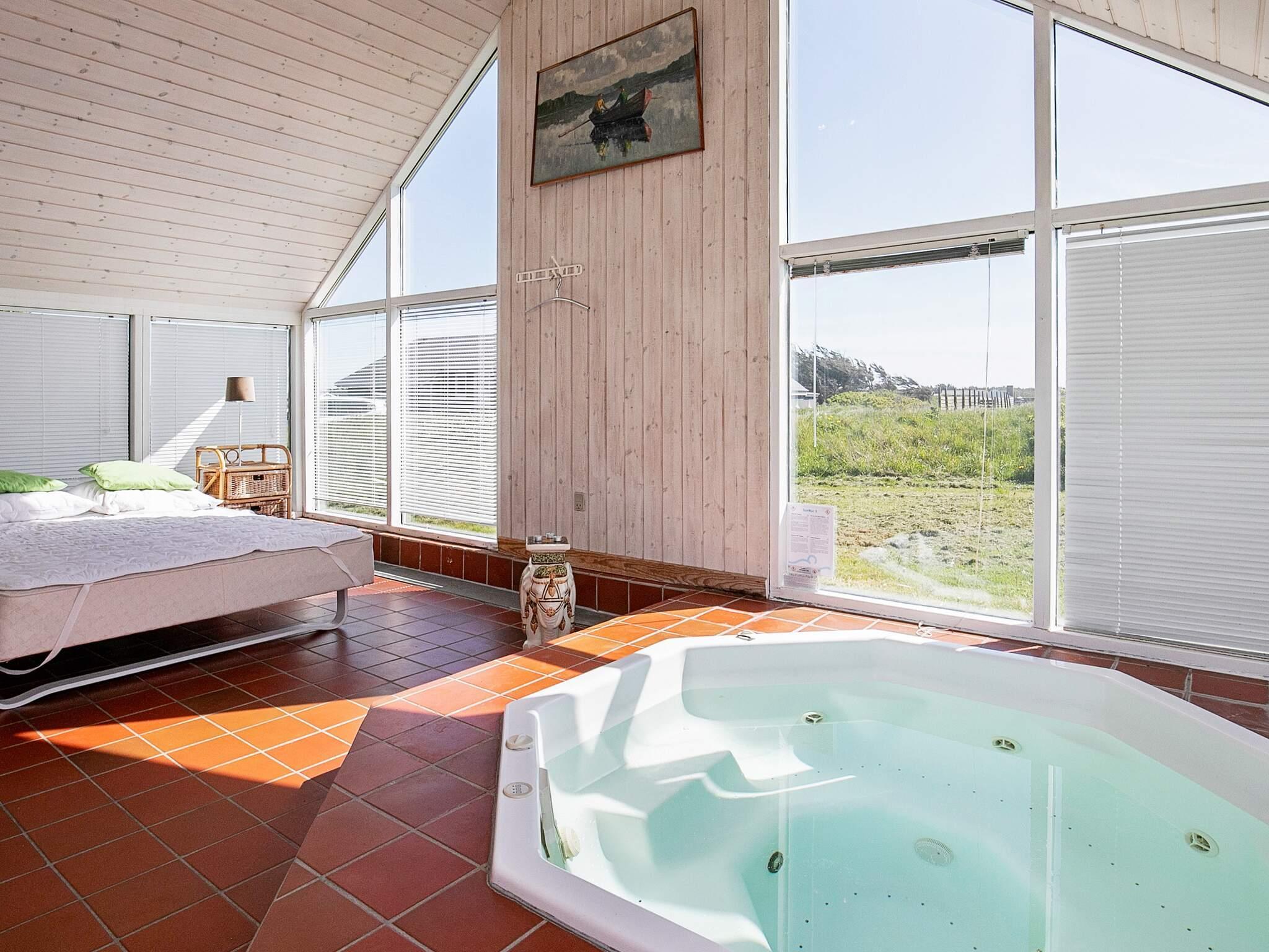 Godt beliggende sommerhus i Nr. Lyngby med spabad og panoramaudsigt over Vesterhavet, der kan nydes fra den store terrasse. Huset er indrettet med åbent køkken i forbindelse med spiseplads og opholdsstue, hvorfra der også er udsigt til havet, samt adgang til terrassen. Der er to soveværelser med ¾-senge samt et soveværelse med køjesenge. Sommerhuset har to badeværelser, hvoraf det ene findes i spa-afdelingen, der er forbundet til huset via glasgang. Der er også brændeovn og sofa i spa-afdelingen, der indbyder til hyggelig wellness, mens I kan nyde udsigten over Vesterhavet. Udlejes ikke til ungdomsgrupper.
