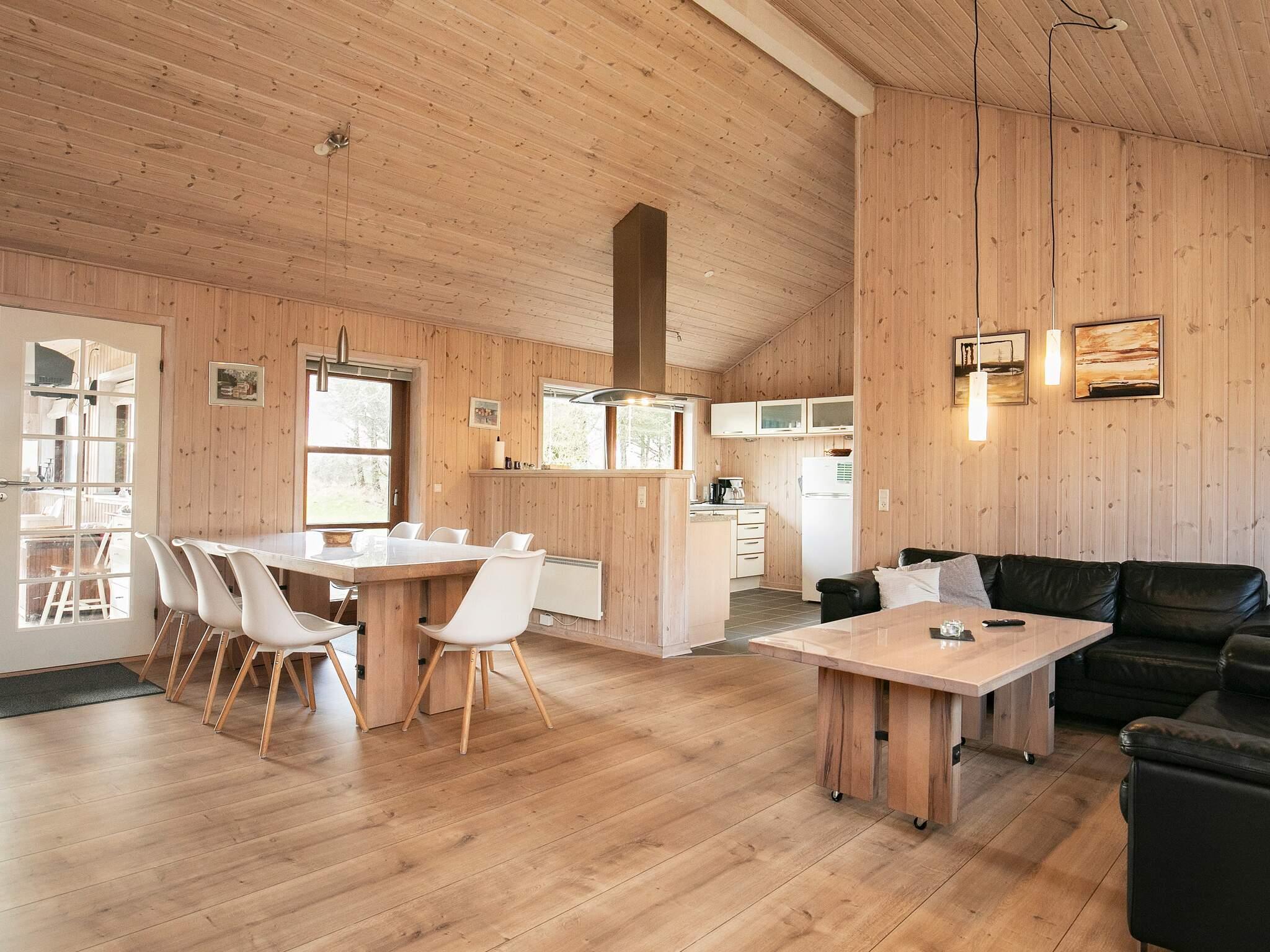 Stort sommerhus med aktivitetsrum og spabad. Huset er beliggende i det lille fiskerleje Nr. Lyngby ca. 5 km nord for Løkken. Aktivitetsrummet har 4-personers spabad, der skal gives besked til Vi, hvis spabadet ønsket klart ved ankomst, det koster 200,-DKK adgang, samt sauna, tv med dvd-afspiller og bordfodbold. Aktivitetsrummet kommer til at danne rammen om mange sjove timer, da der her er fine muligheder for familiesamvær både med spil og leg og i forbindelse med brugen af det store spabad. Huset er indrettet med opholdsstue i åben forbindelse med køkkenet, fire soverum, hems, badeværelse med 1-persones spabad, gæstetoilet med bruseniche og bryggers. Fra stuen er der adgang til den åbne terrasse, der er som skabt til aftenhygge omkring grillen. Grunden er en plan plænegrund delvist omgivet af beplantning. Til børnene er der opsat legetårn og rutsjebane. Gratis adgang til badeland i Blokhus.