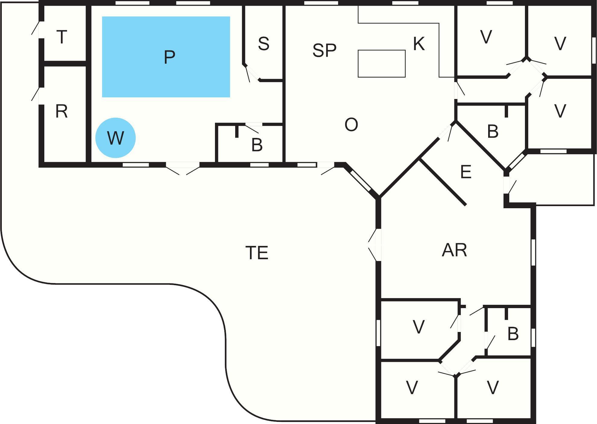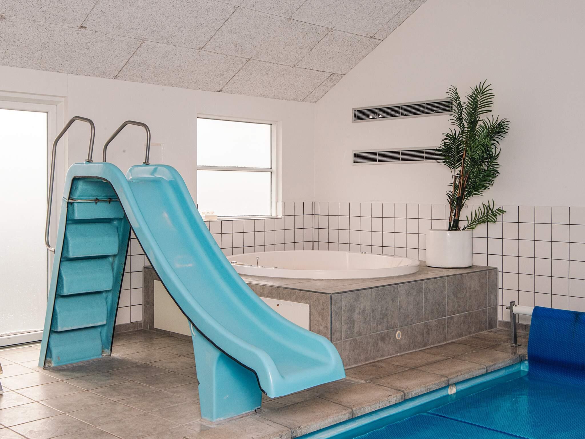 Huset har en poolafdeling, som indeholder både stor swimmingpool, svømmetræner, stort indbygget standvandsspabad og sauna med plads til 4-6 personer. Swimmingpoolen er på 18 m² og med rutschebane til børnene.