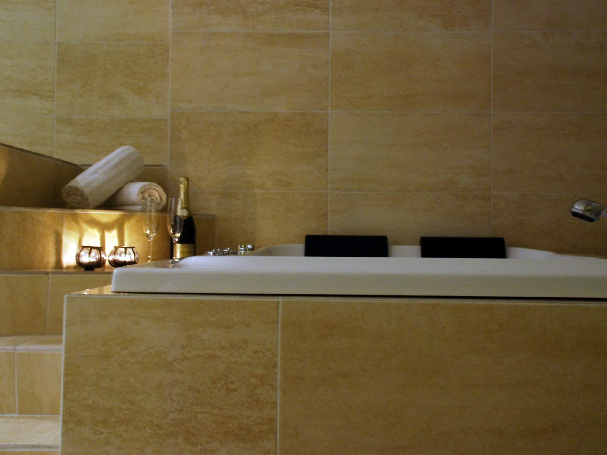 Selve stemningen i poolafdelingen er et kapitel for sig - med en væg af skifer og store, sortblå fliser i swimmingpoolen henledes tankerne på en dyb og hemmelighedsfuld bjergsø for foden af alperne.