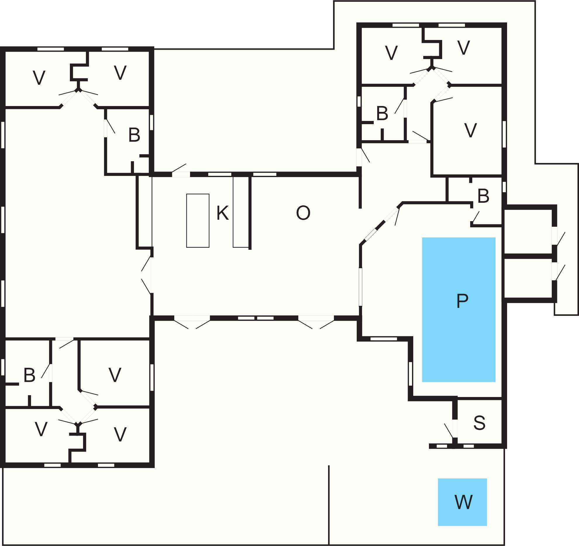 8 Soveværelser: (2S)+(2S)+(2S)+(2S)+(2S)+(2S)+(2S)+(1DS)