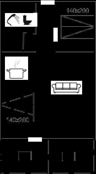Der er i alt 1 soveværelse. Sovepladserne fordeler sig på: 2 sovepladser i dobbeltseng. 2 sovepladser i sovesofa (dobbelt).
