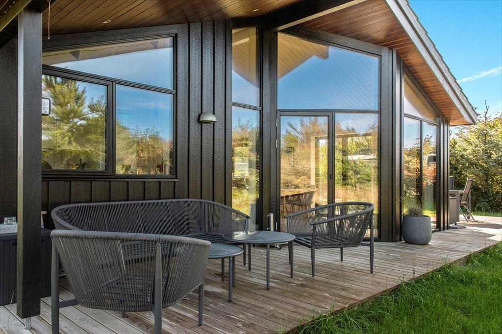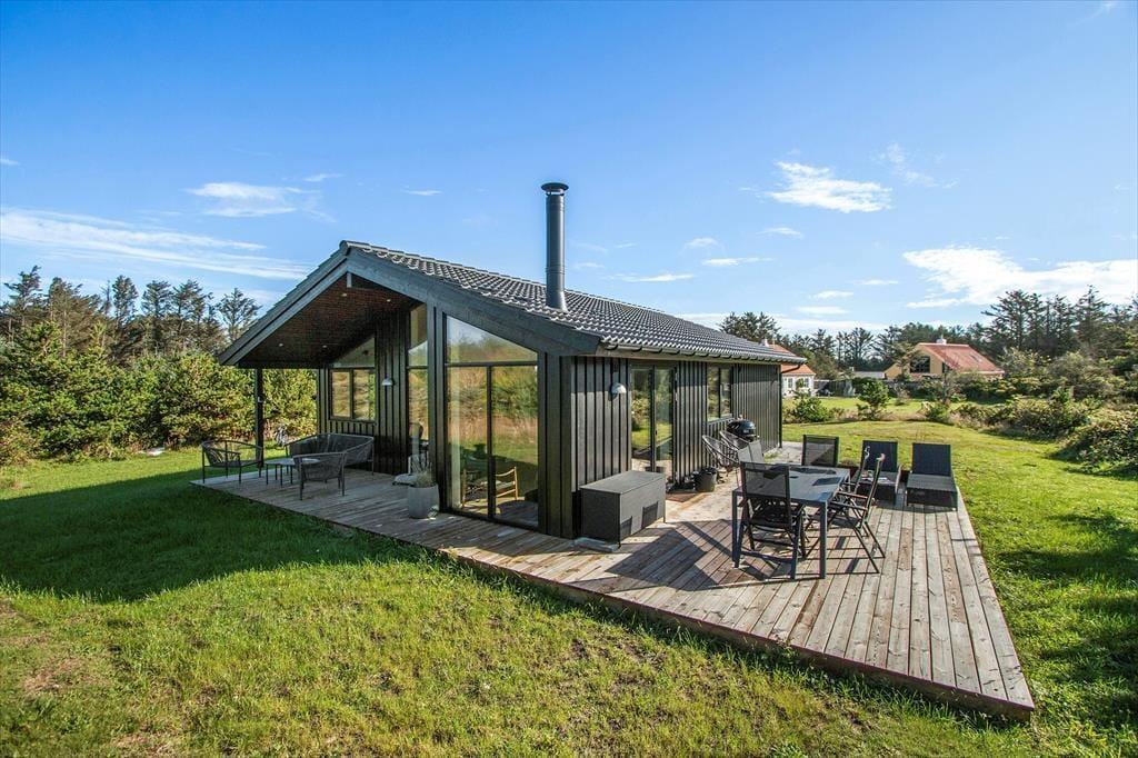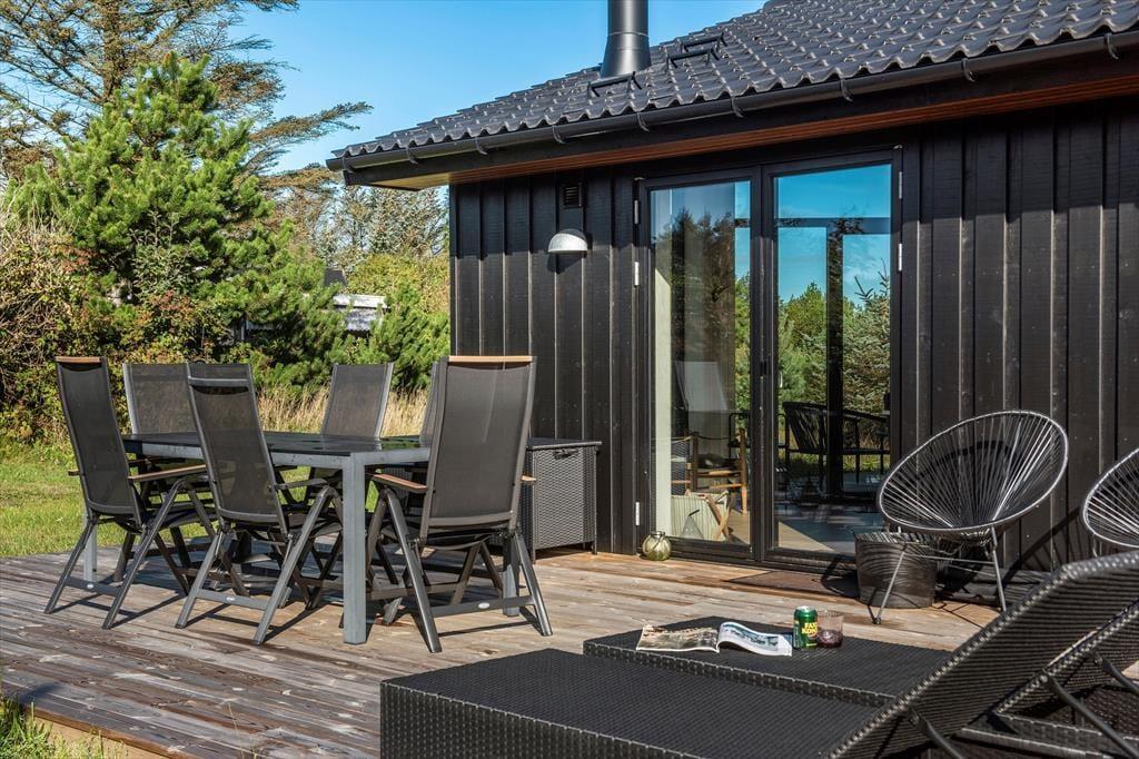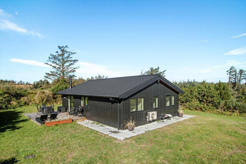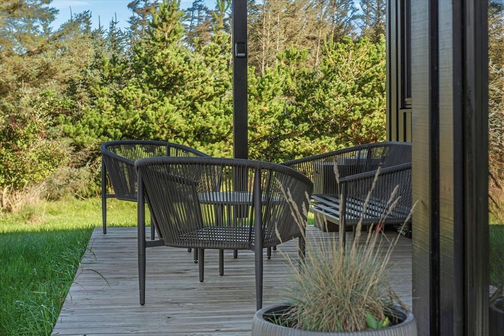 Sommerhusets beliggenhed i naturskønne Nr. Lyngby gør det let at nyde det gode udeliv. Med de skønne terrasseafdelinger kan du altid finde en solrig plet til morgenkaffen eller et hyggeligt sted i skyggen til en eftermiddagslur. Terrasserne indbyder til lange grillaftener under åben himmel, hvor du kan nyde den friske luft og lytte til naturens lyde. Da huset ligger for enden af en blind stikvej, kan du roligt slappe af uden forstyrrelser fra trafik, og de omkringliggende naturskønne omgivelser giver mulighed for at spotte dyrelivet, tage en cykeltur eller gå på opdagelse i det smukke klitlandskab.