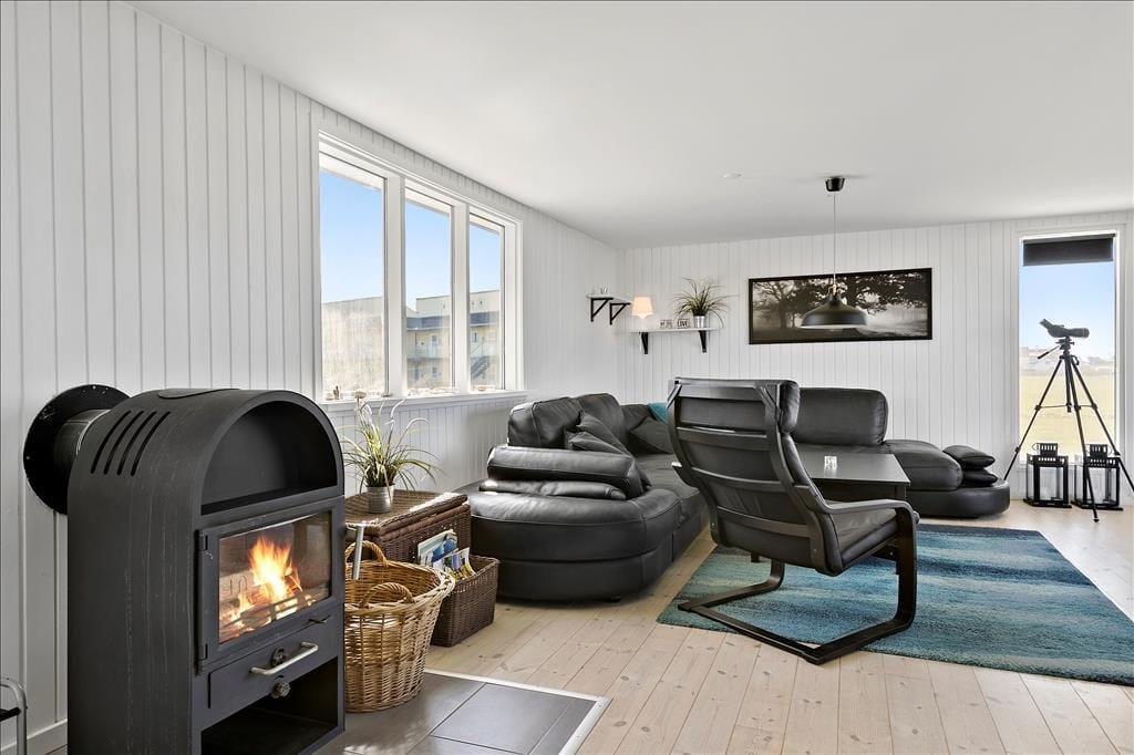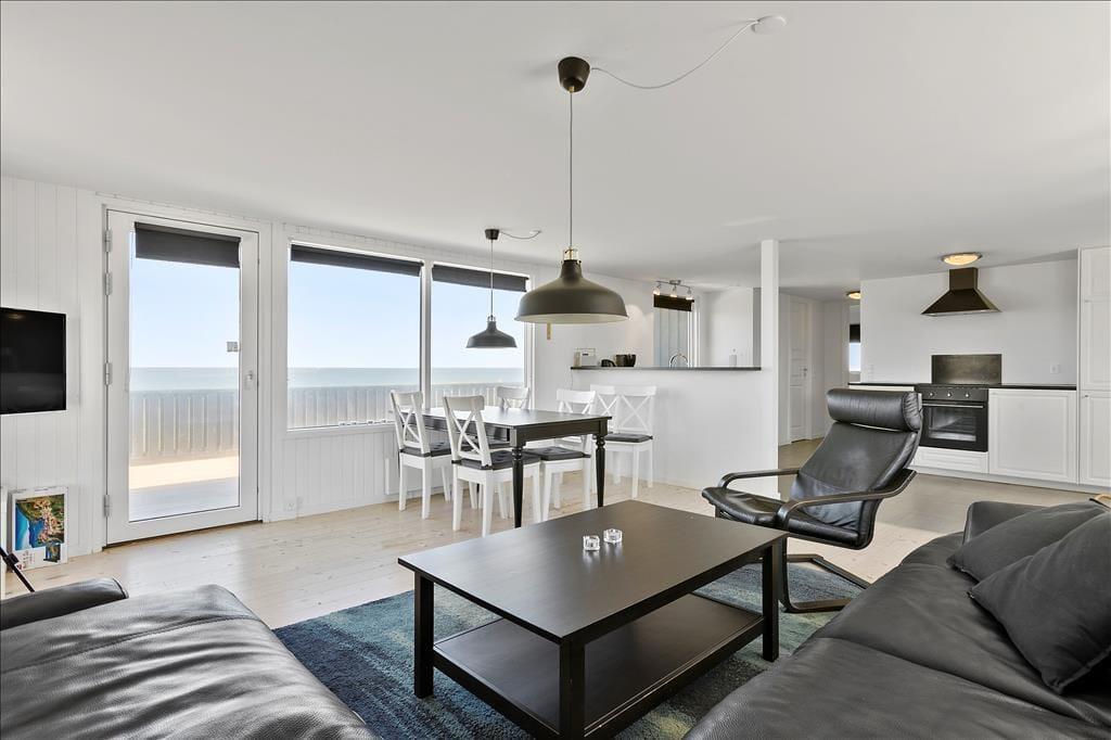 Hvis I drømmer om at holde ferie med flot natur lige udenfor vinduerne, er dette fine sommerhus helt klart en værdig kandidat. Det ligger nemlig i første række til Nr. Lyngby Strand, så fra både stuen og terrassen har I fri og uforstyrret udsigt til Vesterhavet.