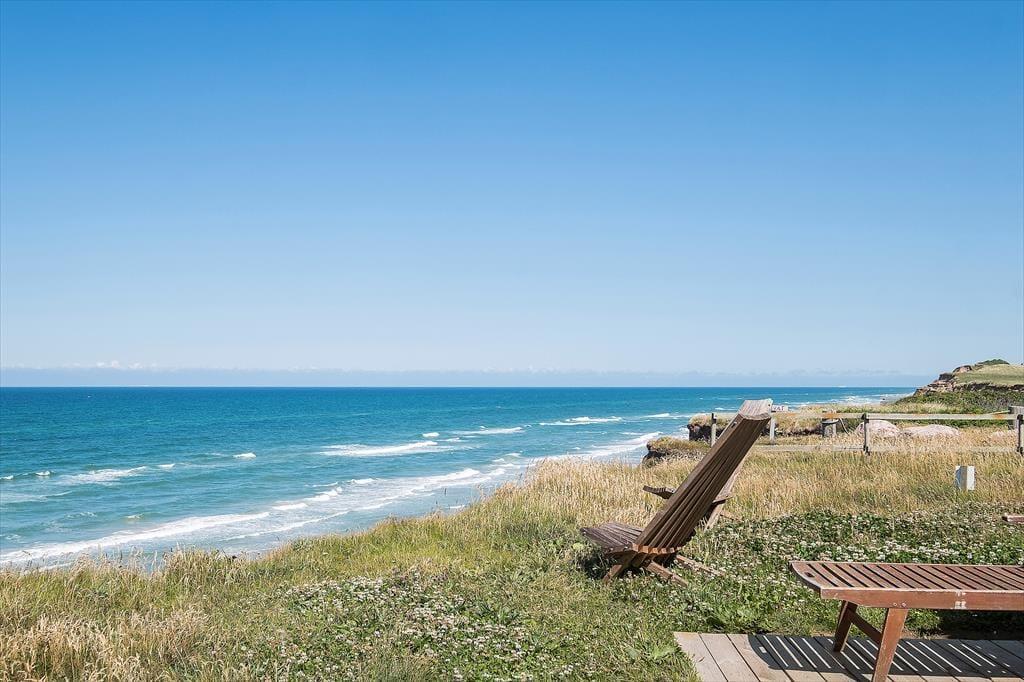 Hvis I er til imponerende udsigtspunkter, frit udsyn og flot natur, skal I unde jer selv at holde ferie i huset. Her på adressen bliver I nemlig belønnet med det vildeste vue i stuen, hvor et vinduesparti dækker hele den vestvendte væg, og selv når I børster tænder på badeværelset kan I kigge ud på Vesterhavets blå bølger. Køkkenet ligger i åben forbindelse med stuen, så her går I ikke glip af noget – heller ikke det hyggelige samvær, der finder sted i opholdsrummet. I stuen er der for øvrigt brændeovn, og hvis I ellers kan løsrive blikket fra udsigten, er der tv med Chromecast. Er det ved at være sengetid, kan I sige godnat og se frem til en god nats søvn på sommerhusets to soveværelser.
