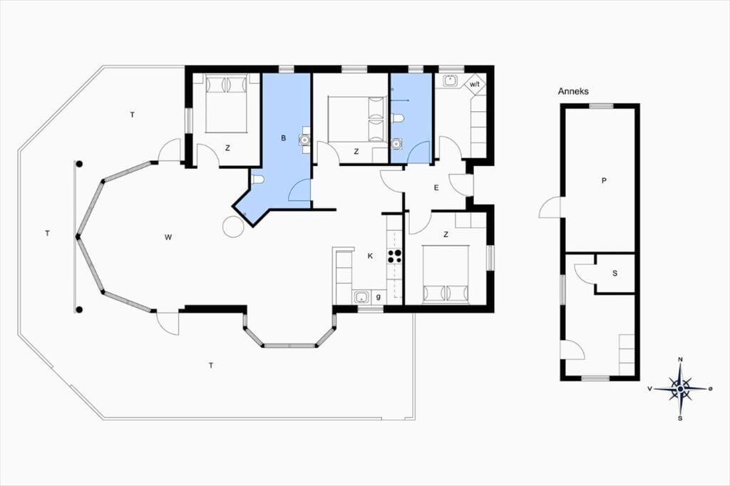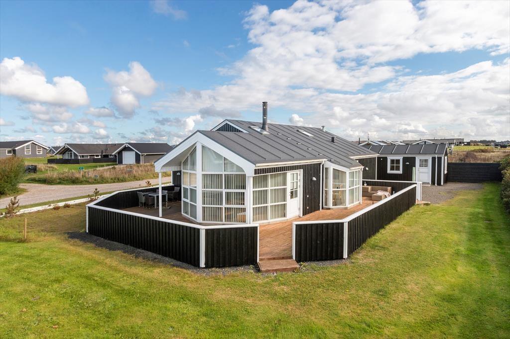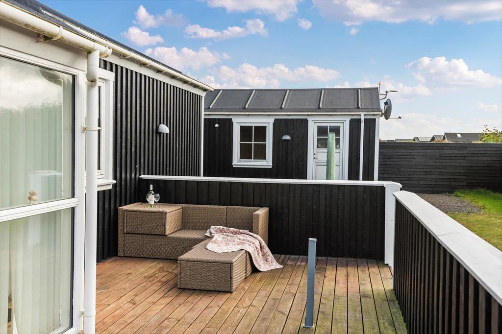 En stor træterrasse breder sig om tre af husets sider, så I kan lige tage bestik af vindretningen og solens placering på himlen, inden I slår jer ned i havestolene. Har I lyst til skygge, kan I tage parasollen i brug, og takket være grillen kan I forkæle jer selv hver aften med sommerlig mad tilberedt under åben himmel.