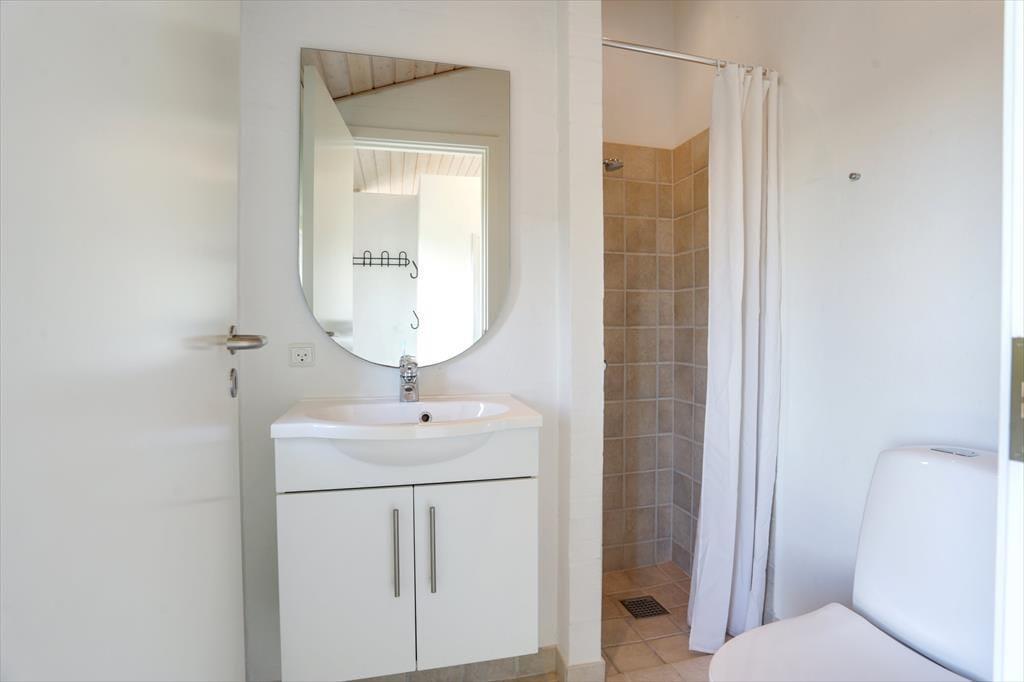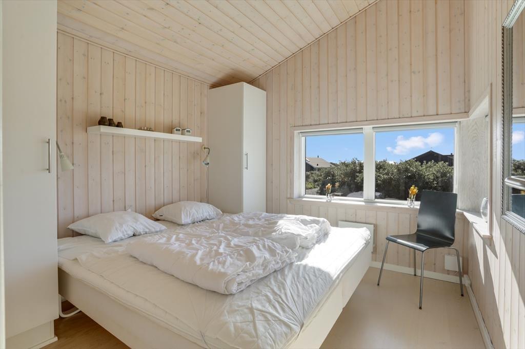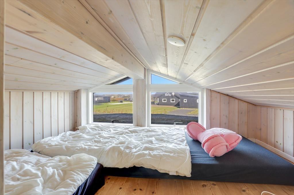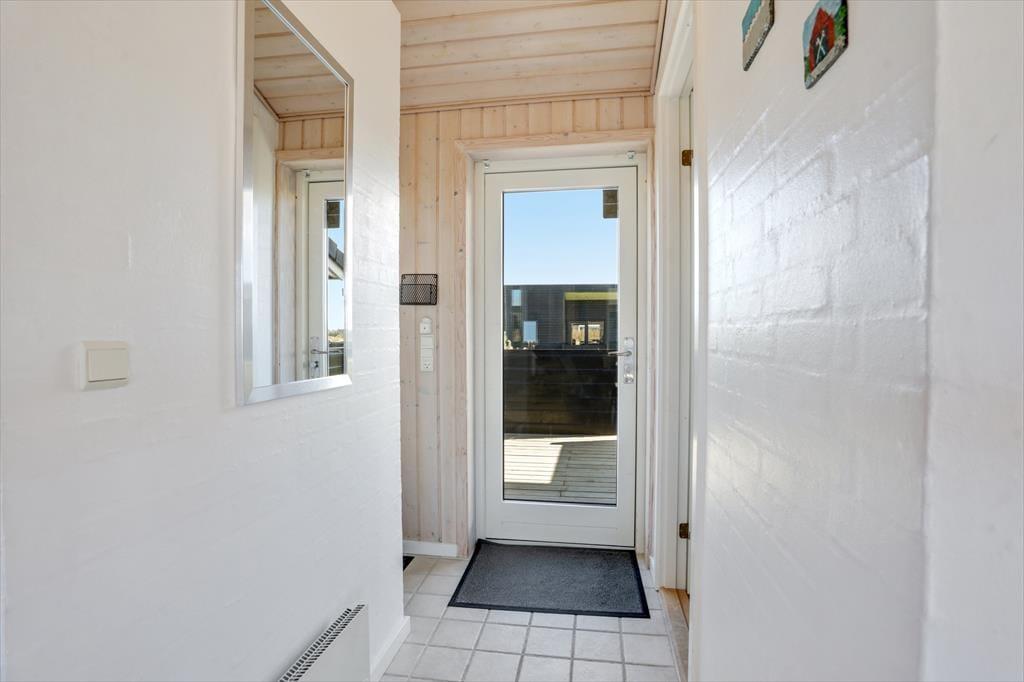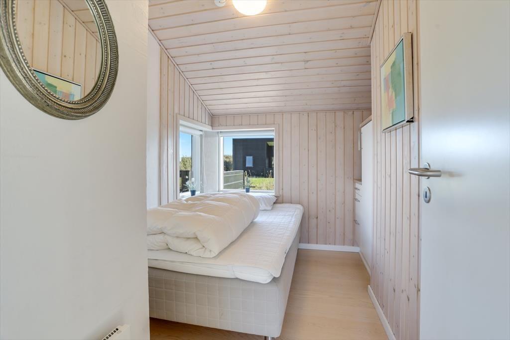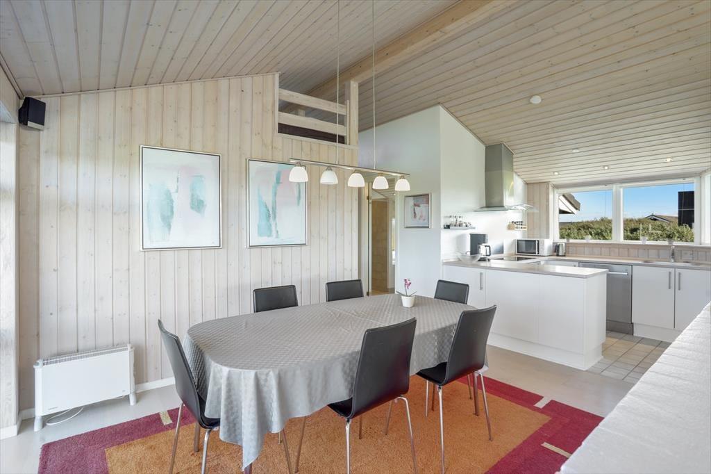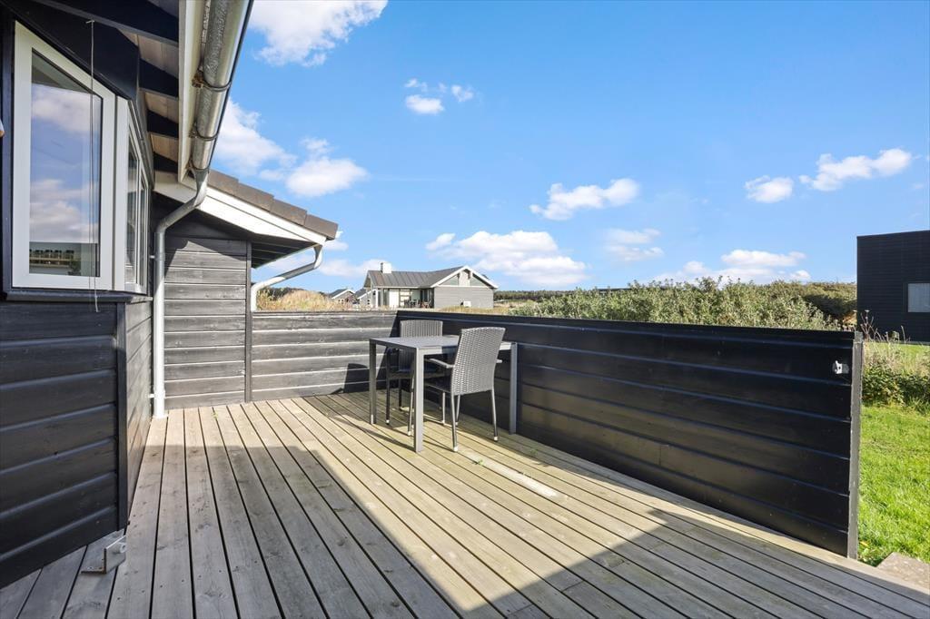 Indenfor mødes du af en lys og indbydende atmosfære, hvor der er tænkt på komfort og samvær. Husets hjerte er det åbne opholdsrum, hvor køkken, spiseplads og stue ligger i forlængelse af hinanden. Her kan du stå ved gryderne og stadig tage del i samtalerne rundt om bordet, mens børnene tegner eller spiller spil. Når dagen går på hæld, spreder brændeovnen sin knitrende varme, som gør det ekstra hyggeligt at samles i sofaen med en film eller en god bog. Sommerhuset har to badeværelser, og på det største finder du både indendørs spabad og sauna – perfekte rammer til en rolig stund, hvor kroppen kan forkæles efter en lang dag med Vesterhavsoplevelser.