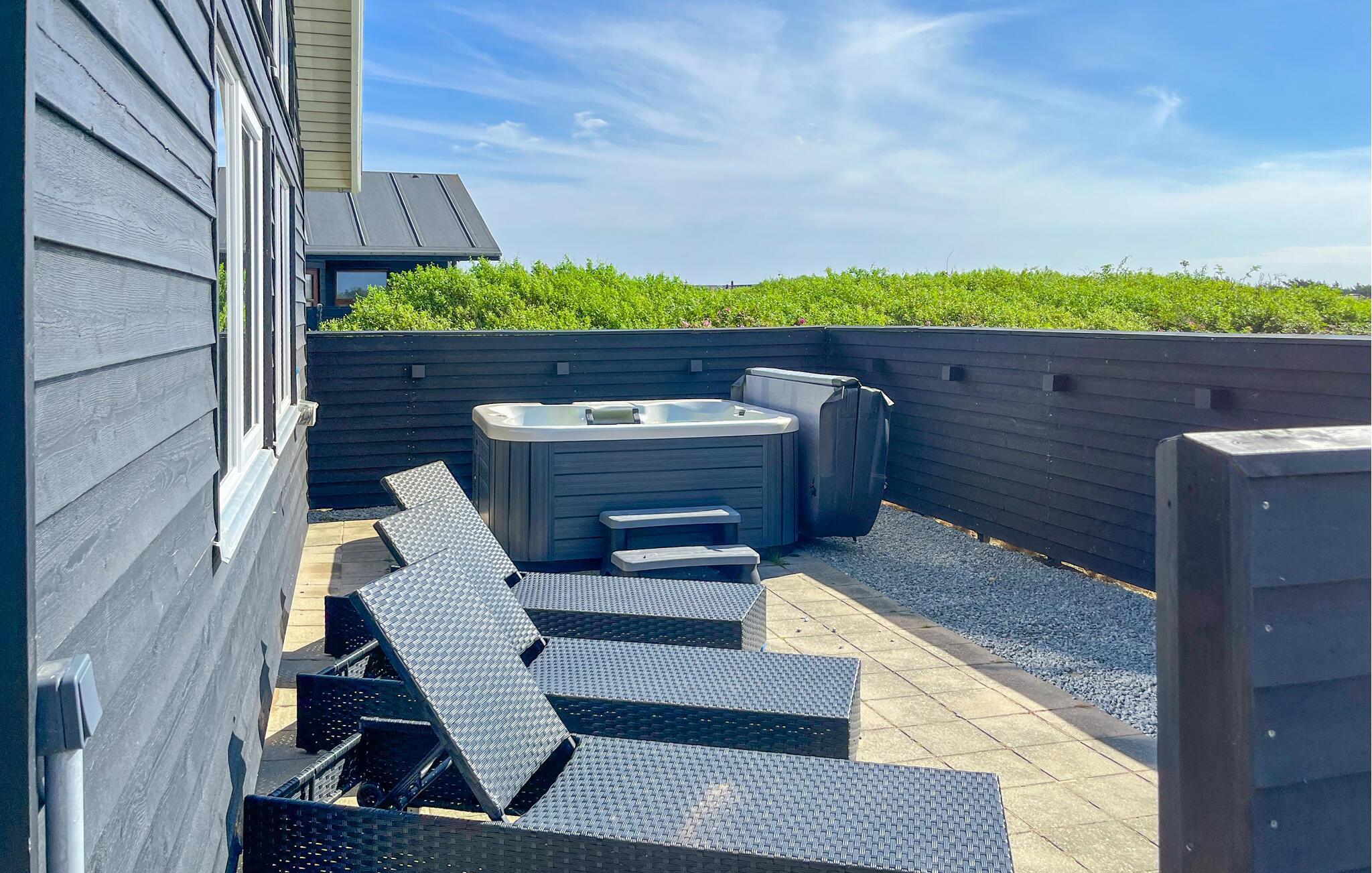 Hvis I er på udkig efter en rummelig bolig med plads til den helt store familiesammenkomst, er dette lækre hus lidt nord for Løkken det helt rette valg for jer. Her får I, ude som inde, godt med plads at boltre jer på og en lang række faciliteter, der gør jeres ophold både komfortabelt og sjovt på tværs af generationerne. Indretningen fremtræder flot og stilsikkert over hele linjen, og køkkenet er fuldt udstyret, så I kan tage jer god tid til at kræse om madlavningen til de hyggelige fællesmåltider. Prikken over i'et er husets pool-afdeling, hvor børnene kan plaske rundt uanset vejret i den store pool, mens de voksne tager den lidt med ro i spabadet eller saunaen. Efter aftensmaden kan I sætte jer godt til rette i det komfortable siddeområde eller duellere i et slag pool eller bordfodbold, inden I runder af med en drink i baren.