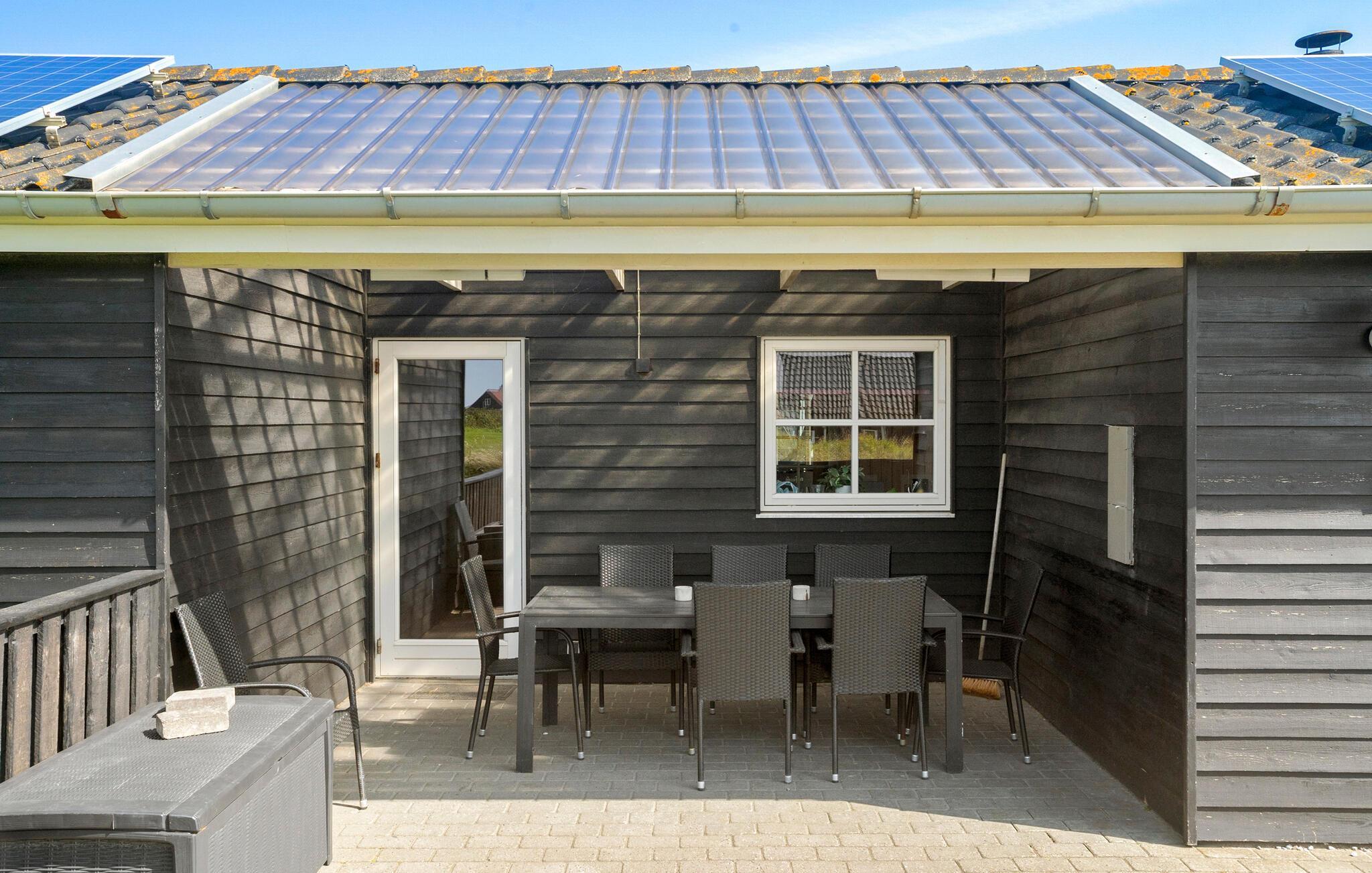 Huset ligger på en fin grund med terrasse og liggestole, hvor I kan nyde solen fra morgen til aften i sommermånederne. Skulle vejret holde hele dagen, kan I grille saftige bøffer og spyd under aftensolen og runde af med et godt glas vin under aftensolen.