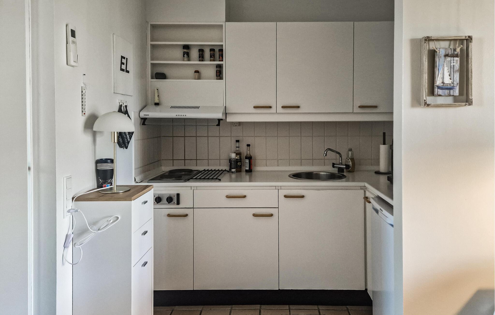 Glæd jer til et afslappende ophold i denne lejlighed i stueetagen, som ligger lige ved Vesterhavet og byder på masser af fritidsmuligheder. Lejligheden byder jer velkommen med en praktisk indretning og en indbydende opholdsstue. Slap af på den komfortable sofa, og nyd jeres måltider sammen ved spisebordet ved siden af det åbne, funktionelle køkken.