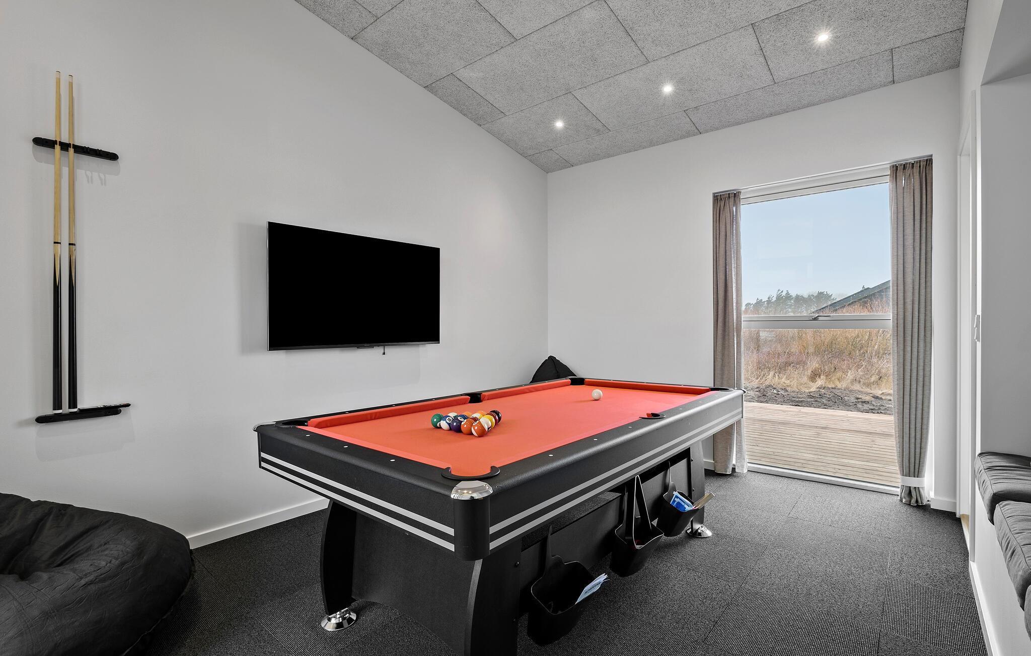 Der er sjove oplevelser til alle i dette veludstyrede hus. Tag en lille dyst over et spil billard. Snup en frisk dukkert i det udendørs spabad på terrassen eller læn jer tilbage i saunaen og nyd varmen. Bålstedet i haven giver jer mulighed for en hyggelig afslutning efter en lang dag fyldt med oplevelser.
