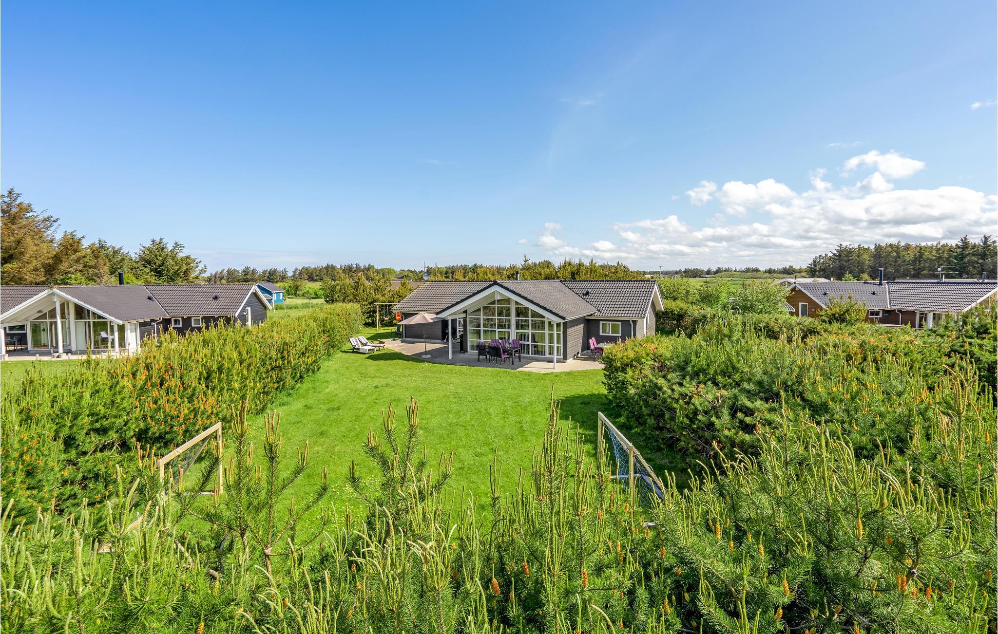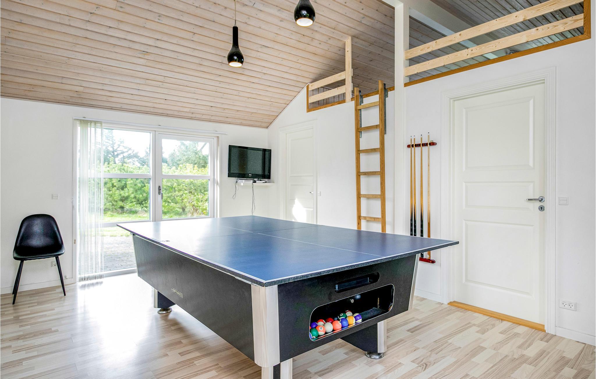 På en hyggelig naturgrund i et roligt kvarter ligger dette rummelige feriehus. Det har en central beliggenhed i forhold til de to hyggelige byer Løkken og Lønstrup og ligger ikke langt fra stranden og Vesterhavet. Huset er optimalt og flot indrettet med bl.a. et stort aktivitetsrum med billardbord og bordtennis. Den pænt møblerede stue har loft til kip og store vinduespartier, der sørger for et dejligt lysindfald. Huset indeholder ligeledes et dejligt og veludstyret køkken, der ligger i tæt forbindelse med stuen. Fra stuen er der udgang til dejlige terrasser.