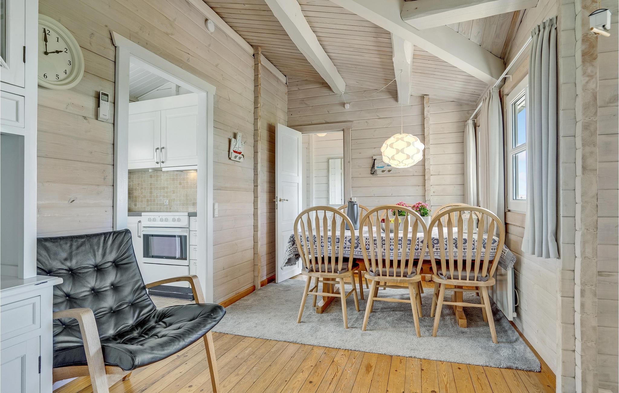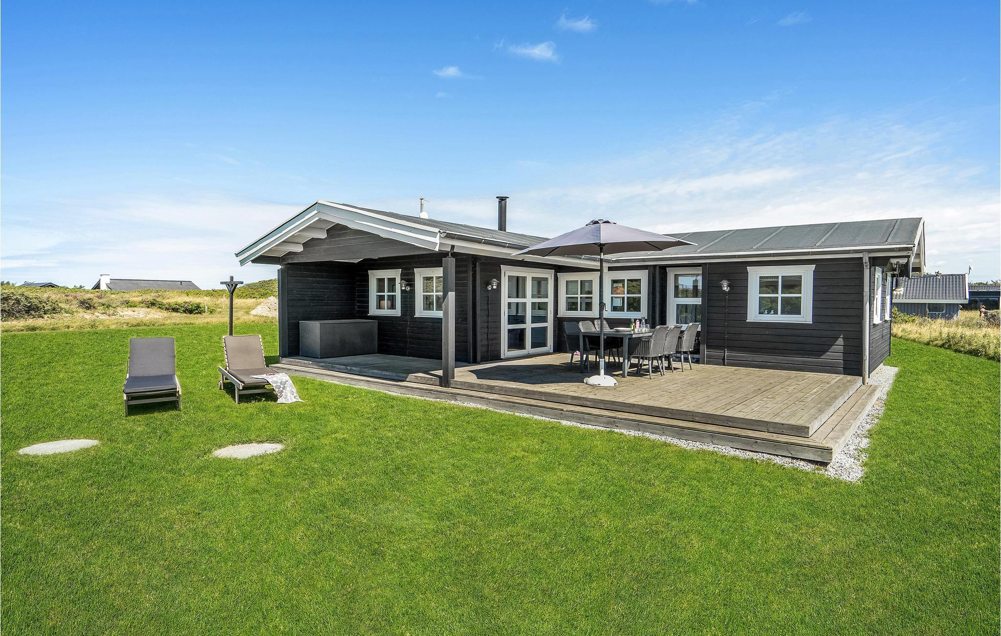 Der er udsigt til åbne arealer og det altid betagende Vesterhav fra dette velholdte bjælkehus, der er lyst og hyggeligt møbleret. Nyd livet på terrassen der er afskærmet af huset på to sider, så her er dejligt læ. Sid under den overdækkede del også længe efter duggen og mørket er faldet er faldet. Til børnene er der gynge og sandkasse til mange timers leg og god plads til boldspil og andre sjove udendørs aktiviteter. Løkken er en af de mest klassiske badebyer ved vestkysten, med sine hvide badehuset ved den brede sandstrand, hvor I kan køre helt ud til vandet. Her er fiskerbåde hvor I kan købe pivfrisk fisk, de karakteristiske bunkere og en frisk vind, som både windsurfere, paraglidere og jer der vil sætte en drage op, sætter pris på.