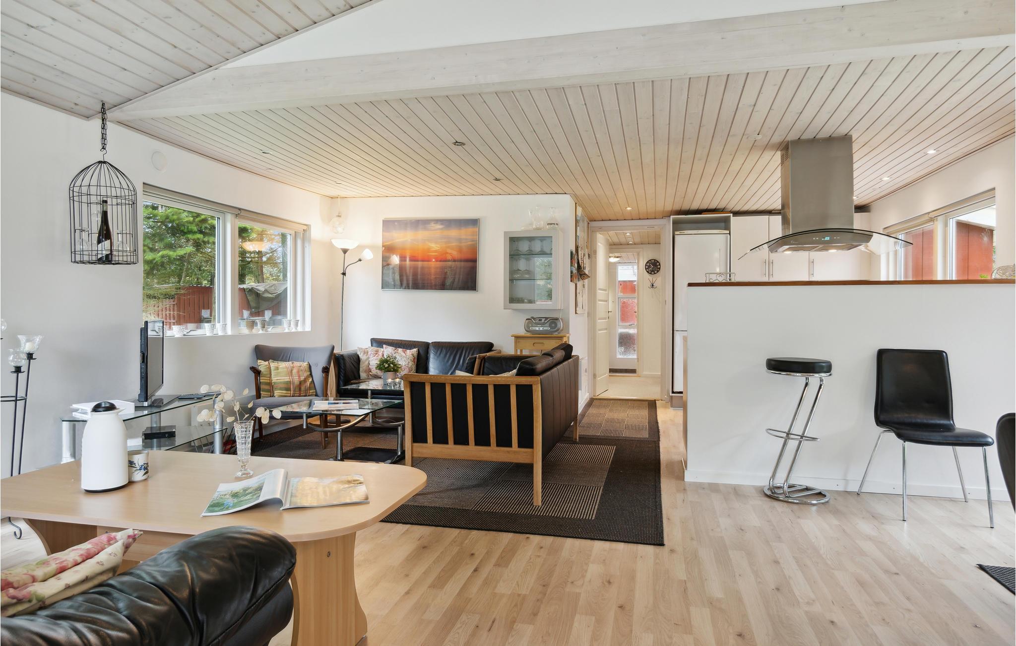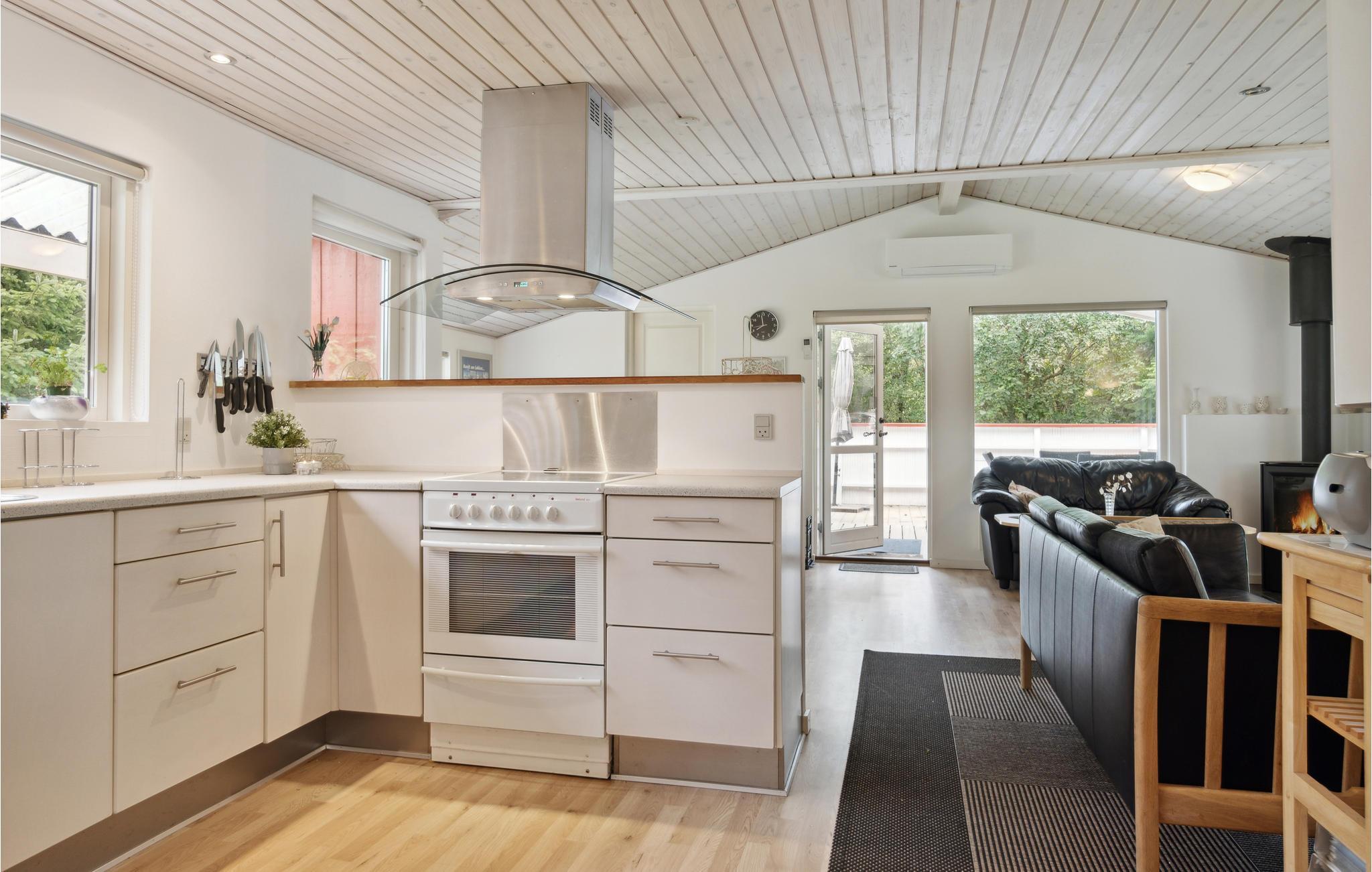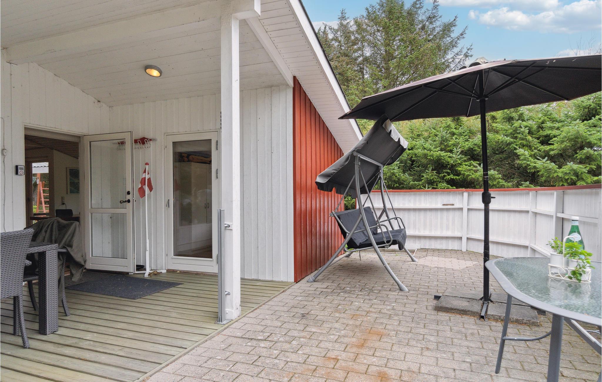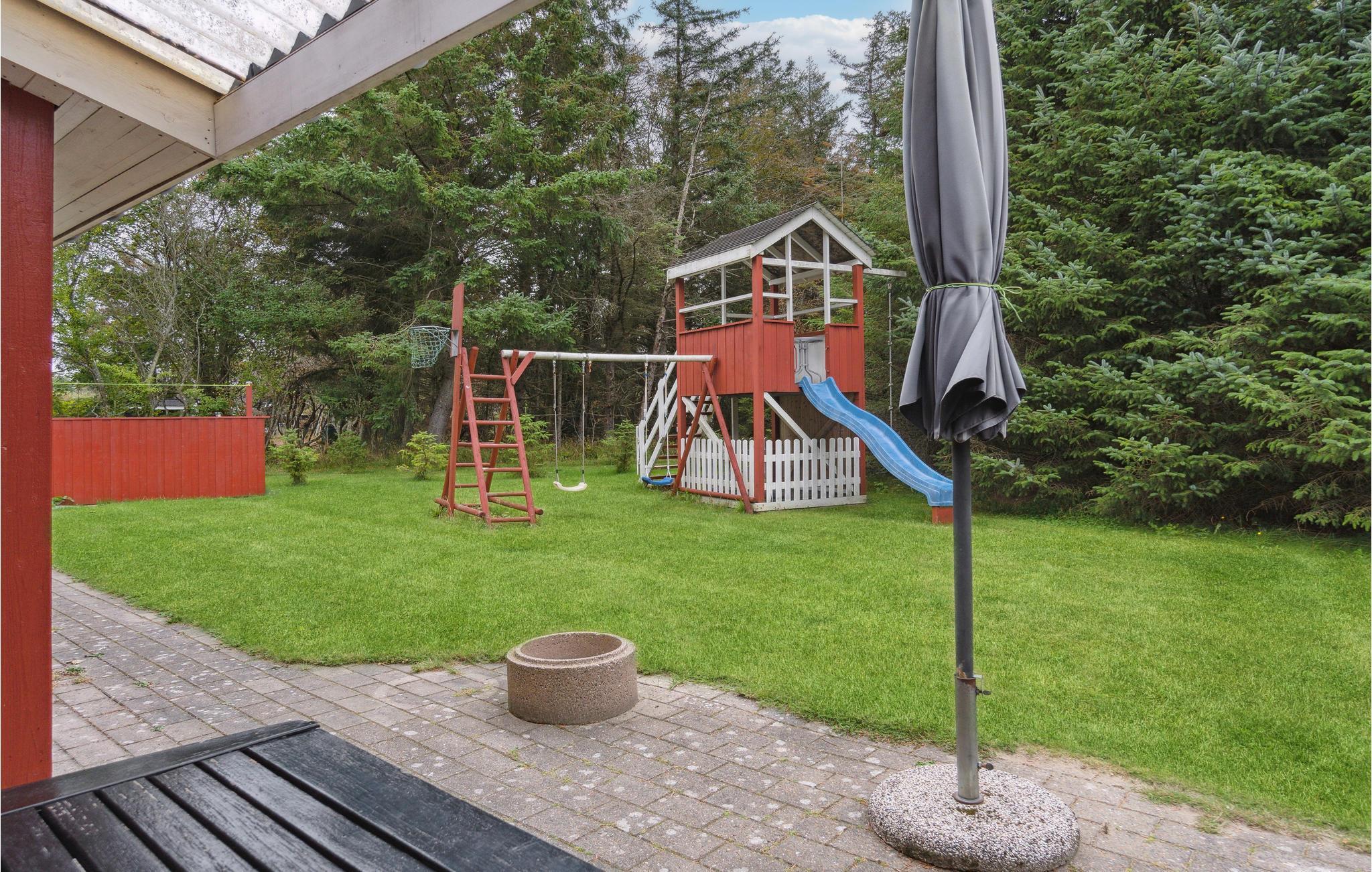 Ikke langt fra den brede sandstrand og en markant, høj kyst ligger dette feriehus i læ af stedsegrønne nåletræer i et roligt ferieområde. I det afvekslende klitlandskab kommer man ad de afmærkede vandre- og cykelstier tæt på et rigt dyreliv, og det er altid afslappende at nyde udsigten fra de høje klitter eller lade det forfriskende Vesterhav skylle om de bare fødder. Her er også et paradis for paraglidere, der kan sætte af fra de høje klinter. Vil man spille golf, er der for både nybegyndere og øvede gode golfbaner i Løkken og i Blokhus. Skal man bidrage med frisk fisk til aftenmåltidet, er der gode fiskepladser fra molen, ved stranden eller i put & take søer i området. Der er kun ca. 5 km til den livlige badeby Løkken med et Action- House med bowling, gokarts, laser-games og meget mere, og der mangler heller ikke diskoteker, gode cafeer og restauranter. Sjovt bliver det, når man kan vælge mellem 50 forlystelser i Fårup Sommerland eller boltre sig i det store udendørs vandland, og på Family Farm Fun Park vil de små nyde at komme tæt på en stor variation af tamme dyr. Vil man se hvad havet og sandflugten i denne til tider barske egn kan udrette, skal man tage til Rubjerg Knude Fyr, som har måttet opgive kampen mod sandflugten og nu er ved at sande til.