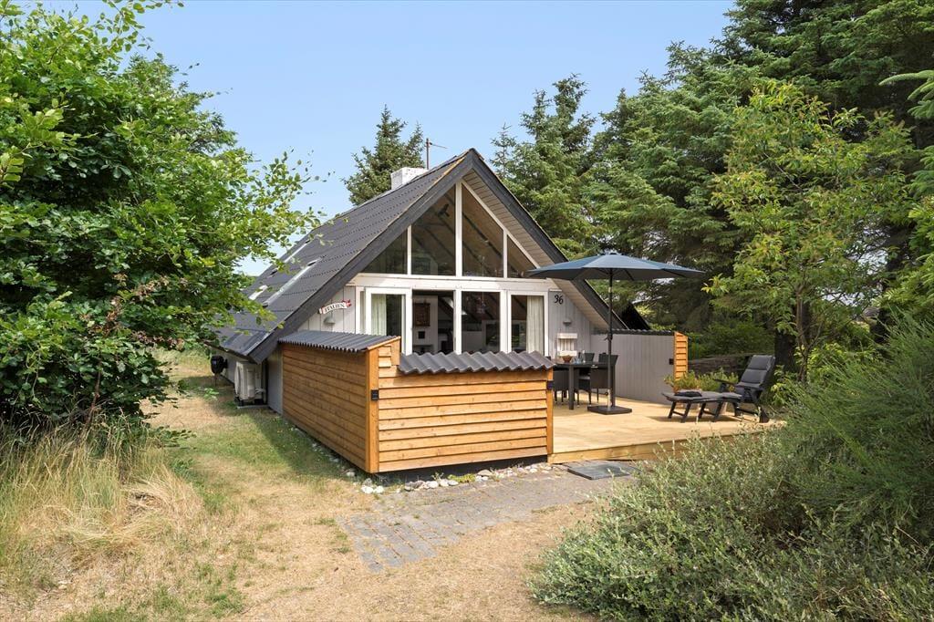 Sjæl og atmosfære er nøgleord for dette skønne sommerhus, der står klar til at danne rammen om feriedagene for seks personer. Grunden emmer også af hygge og afslapning, for huset er omkranset af frodige træer, så dasedagene på den sydvendte terrasse eller i den ugenerede have har samme stemning som i en lille lysning i skoven.