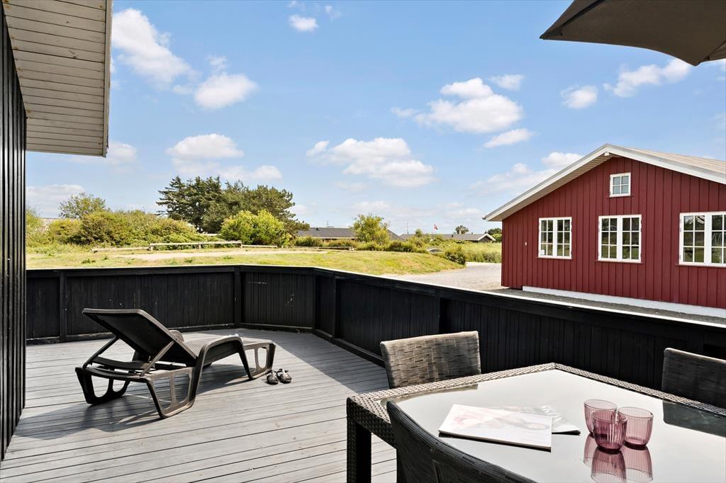 Når solen står højt over Nr. Lyngvig, er sommerhusets træterrasse den helt rette opholdsplads. Dagen kan starte på østsiden af huset, hvor I kan drikke morgenkaffe og nyde de rolige omgivelser – eventuelt mens børnene smutter over på det grønne fællesareal for at lege, spille bold eller gynge. I kan også slutte jer til dem for at spille petanque eller en rask fodboldkamp, før I vender tilbage til den sydvendte terrasse for at grille og slappe af i liggestolene.