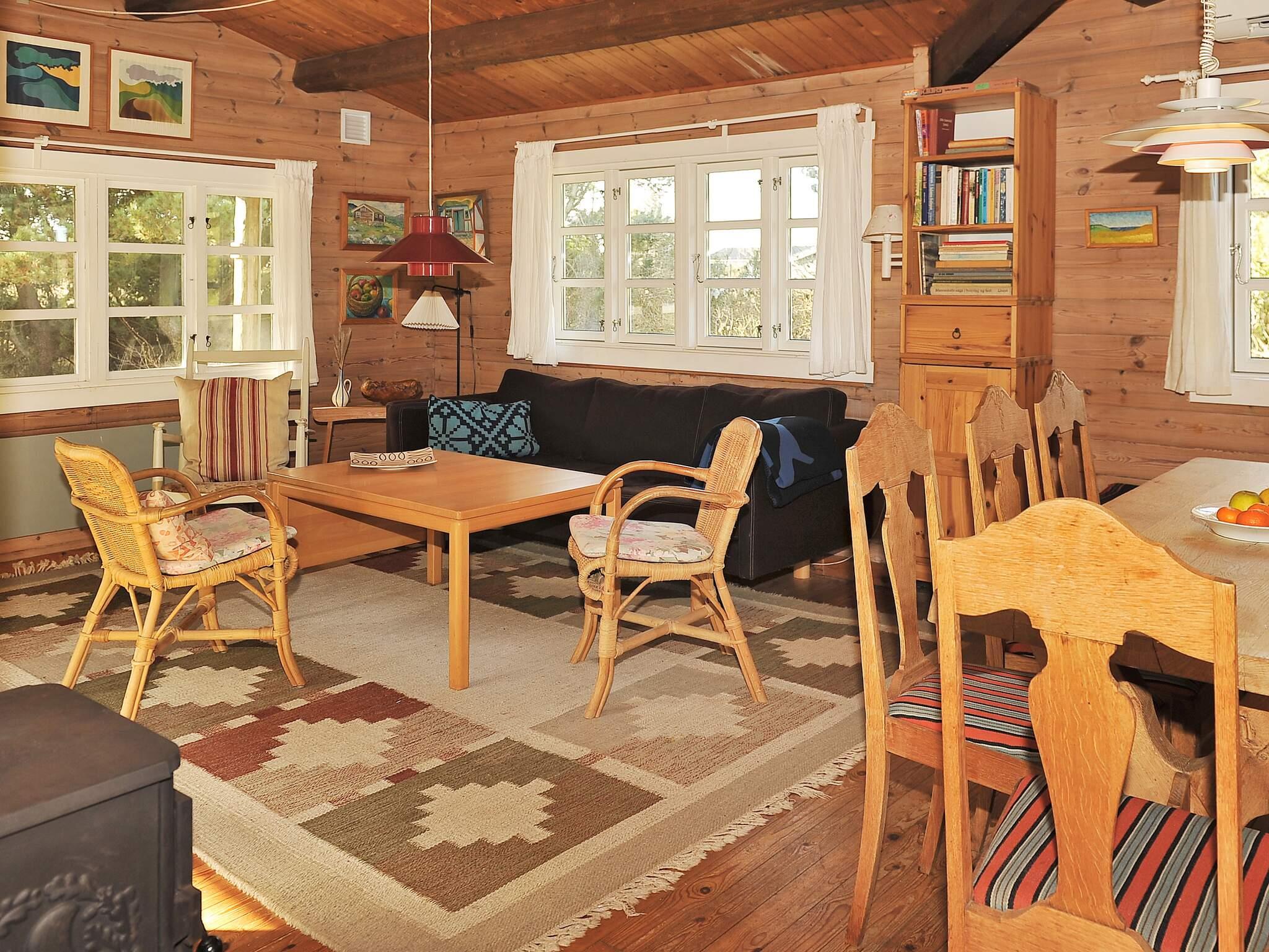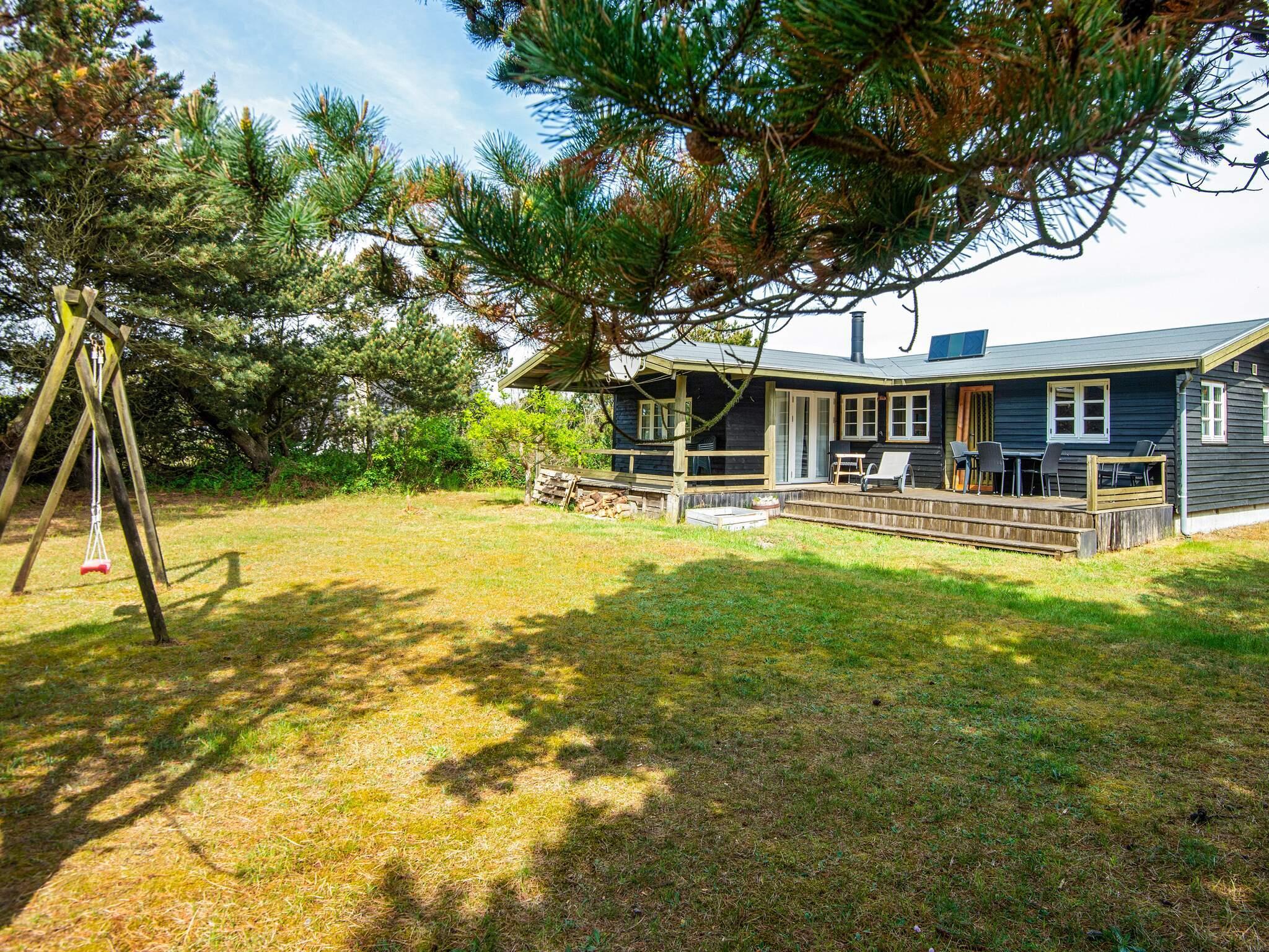 Sommerhus beliggende kun ca. 800 meter fra Vesterhavet. Sommerhuset er indrettet med et veludstyret køkken i åben forbindelse med den kombinerede opholds- og spisestue. I kan sidde i stuen og nyde den omkringliggende natur på en kølig sommeraften, mens I luner jer ved husets brændeovn. Sommerhuset er af ældre stand og egner sig godt til dem, der nyder en dejlig afslappet atmosfære midt i naturen.