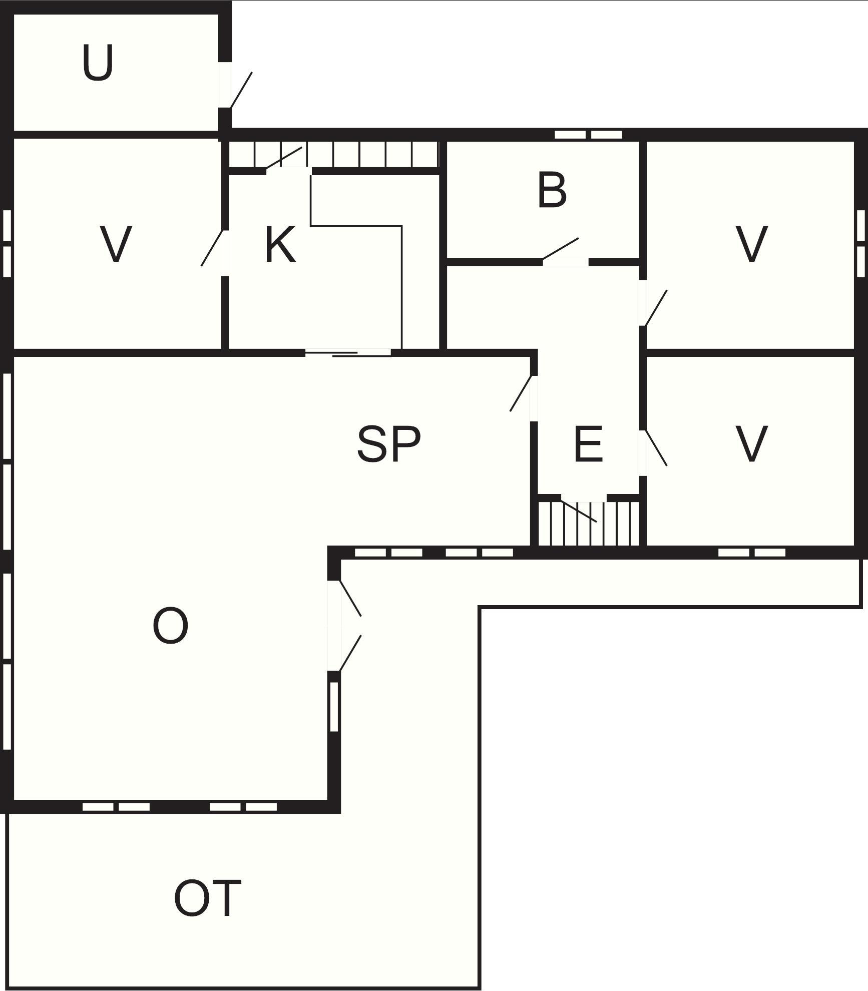 Foruden køkken og kombinerede opholds- og spisestue er sommerhuset også indrettet med tre soverum og et badeværelse. Et af soverummene er indrettet med dobbeltseng, mens de sidste to soverum hver er indrettet med en etageseng til to personer.