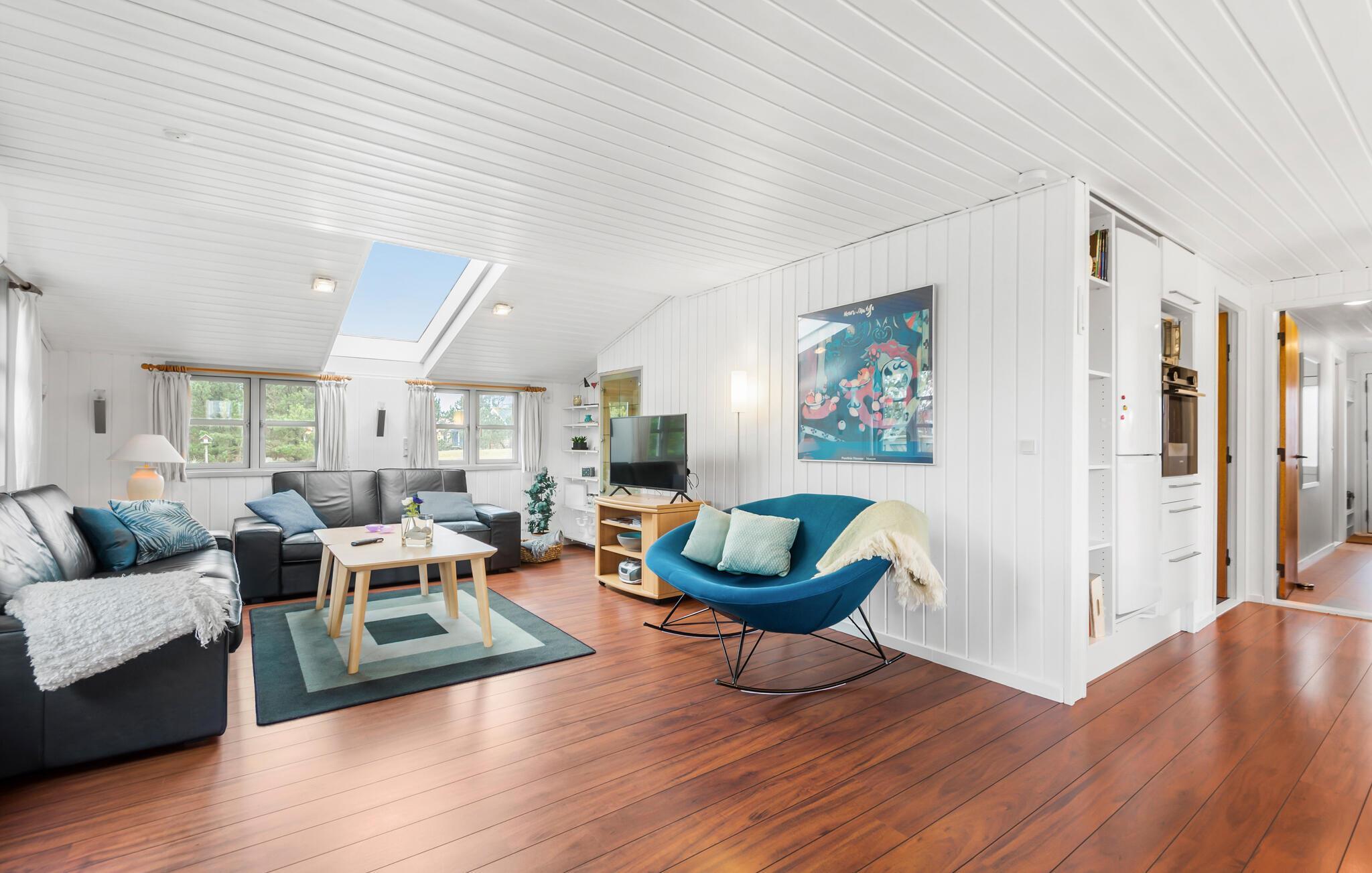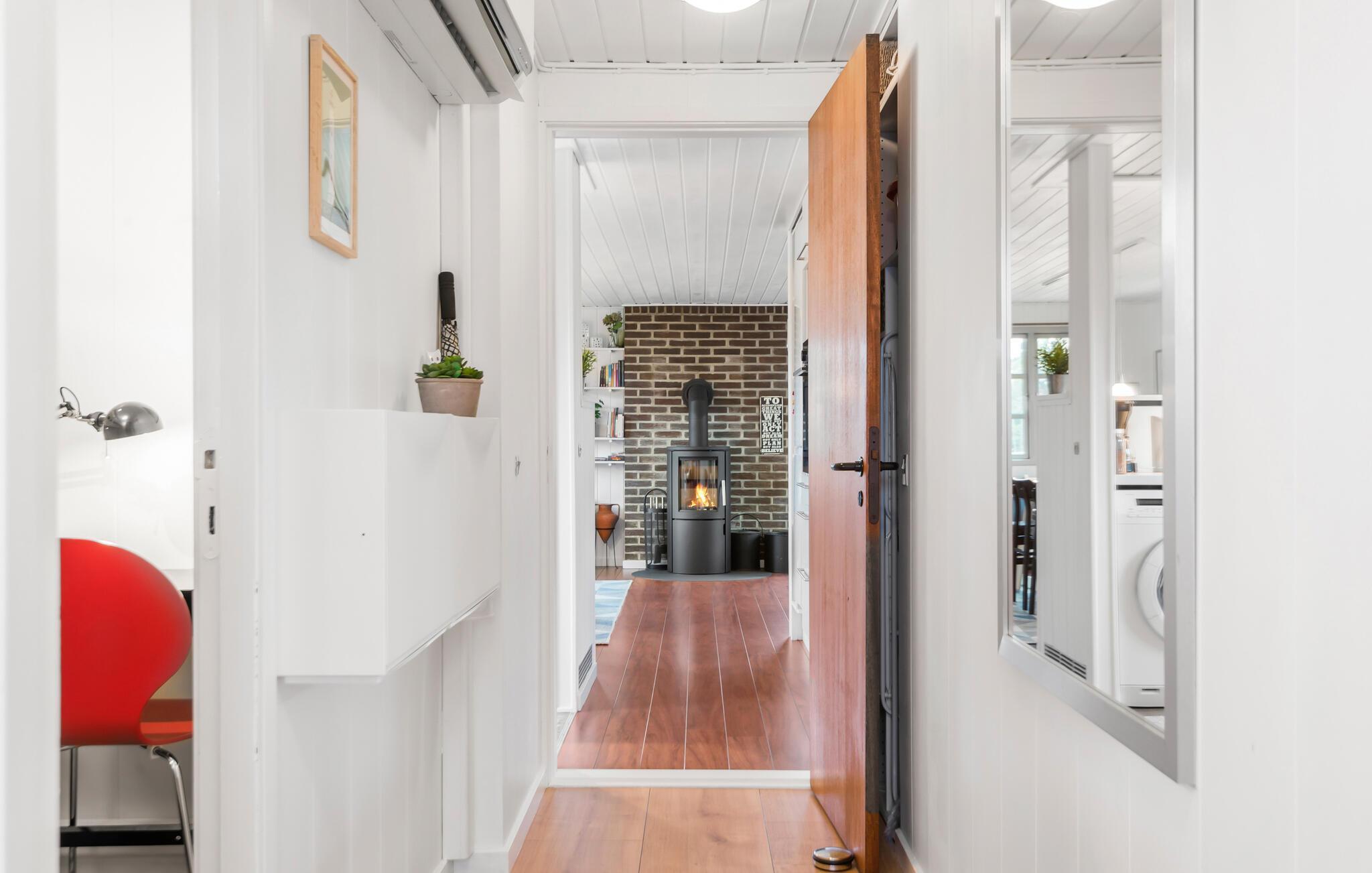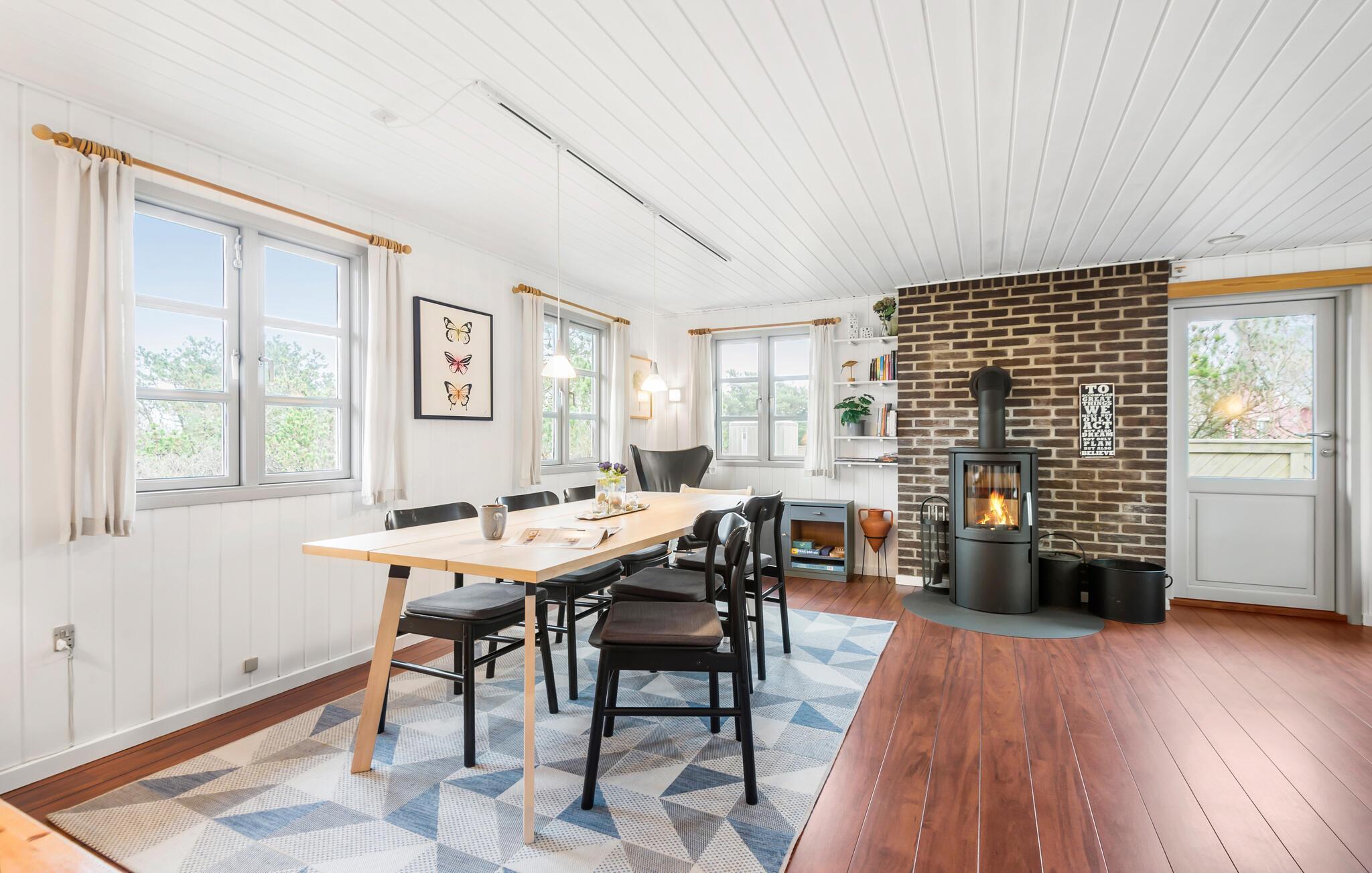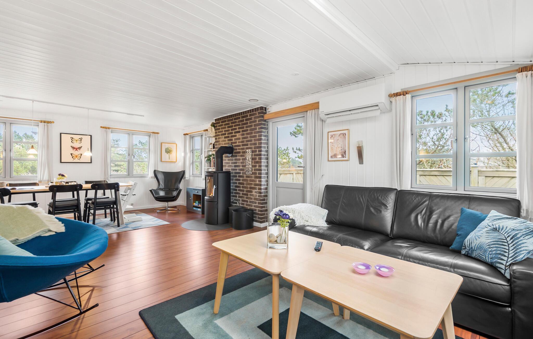 Nyd en velfortjent pause fra hverdagen i dette hus i Nr. Lyngvig. Huset skaber de ideelle rammer for, at I kan slappe af og tilbringe tid sammen med jeres nærmeste. Den gode indretning og det naturlige lys, der kommer ind gennem de mange vinduer og ovenlysvinduer skaber en behagelig lys atmosfære med kig til himlen. Brændeovnen, som spreder hygge på køligere dage, fuldender den gode oplevelse. Afhængigt af vejret kan I vælge mellem en solrig eller vejrbeskyttet terrasse. Her kan I samles for at grille og spille et slag kort. Måske rykker I også morgenmaden udenfor? Nyd solen i haven og luk øjnene på solstolene.