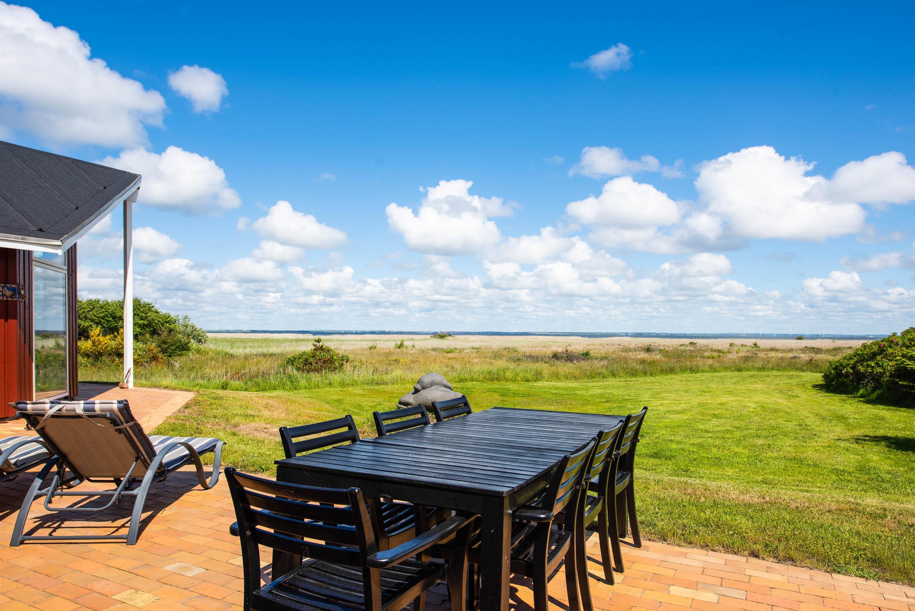 Gode havemøbler og en grill står klar til mange timer ude i den friske vesterhavsluft. Et koldt glas rosé og lækker grillmad hører gerne til en skøn sommerhusferie. En dejlig måde at slutte endnu en god dag på den jyske vestkyst af på.
