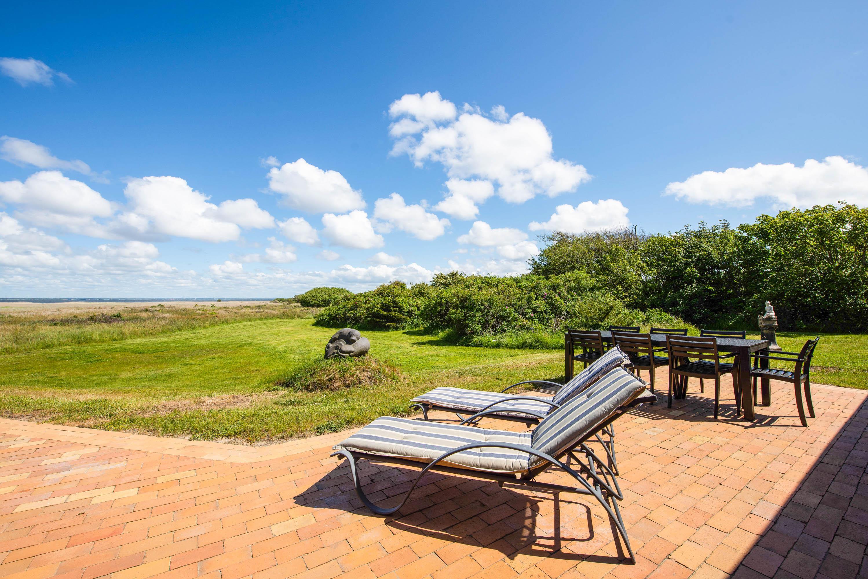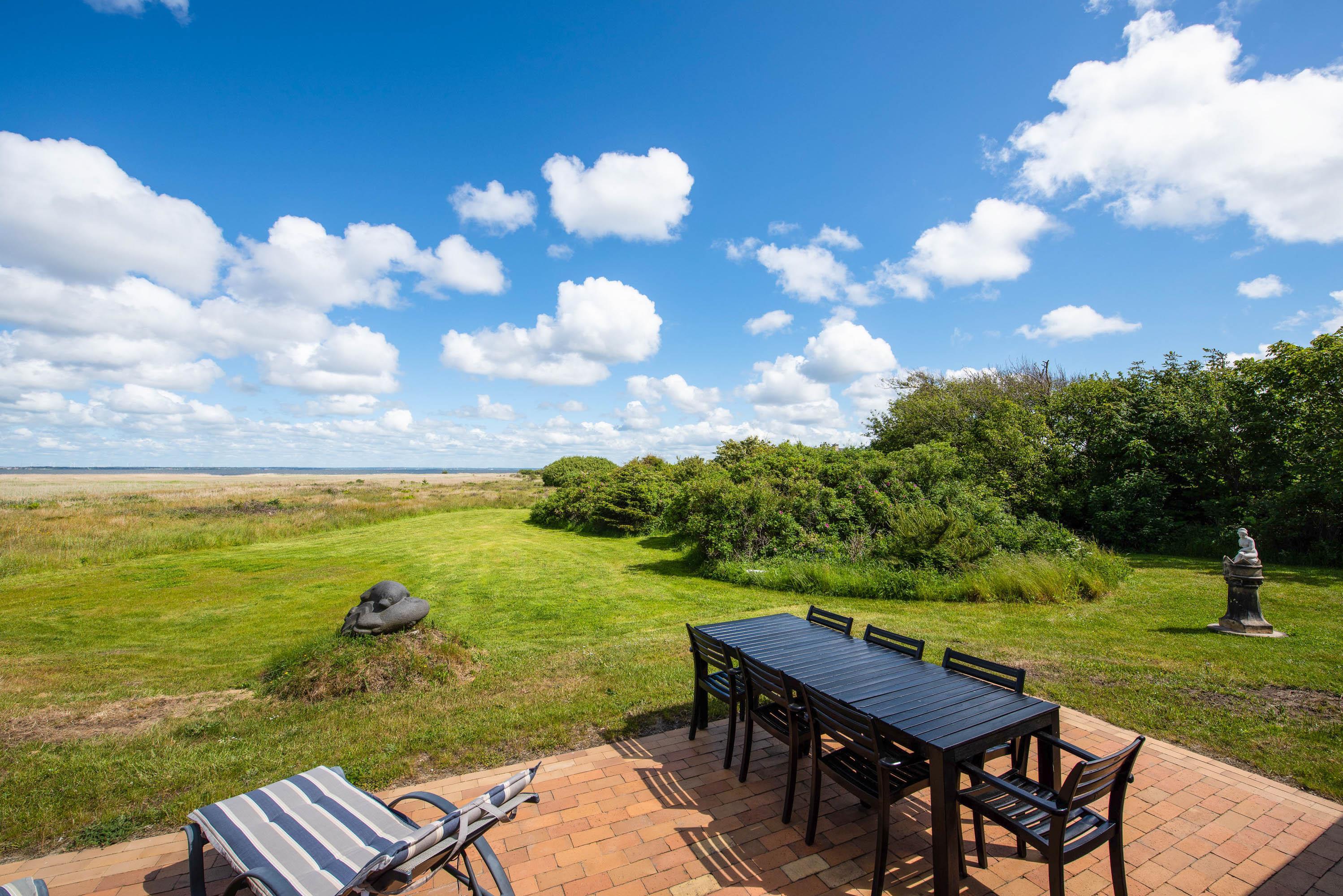 Den brolagte terrasse er endnu et highlight. Her kan I sidde helt uforstyrret, nyde solen dagen lang og frem for alt drømme jer væk med udsigt over fjorden.