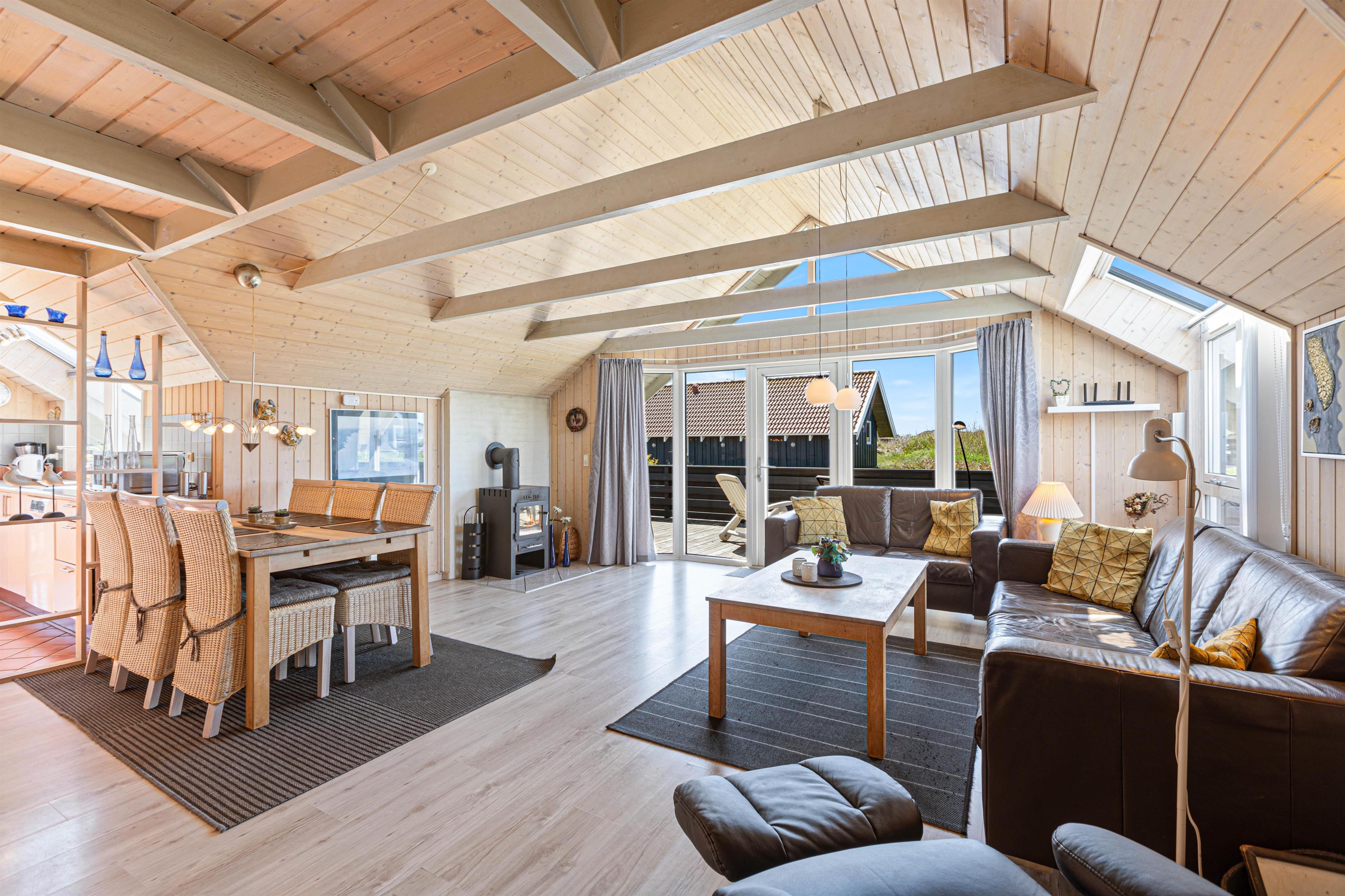 Derudover er der en rummelig stue, hvor du kan se en god film eller læse en spændende bog, mens brændeovnen spreder varme og hygge. På det store badeværelse er der også spabad og sauna, hvor du kan forkæle krop og sjæl, eller lade børnene plaske i de varme bobler.
