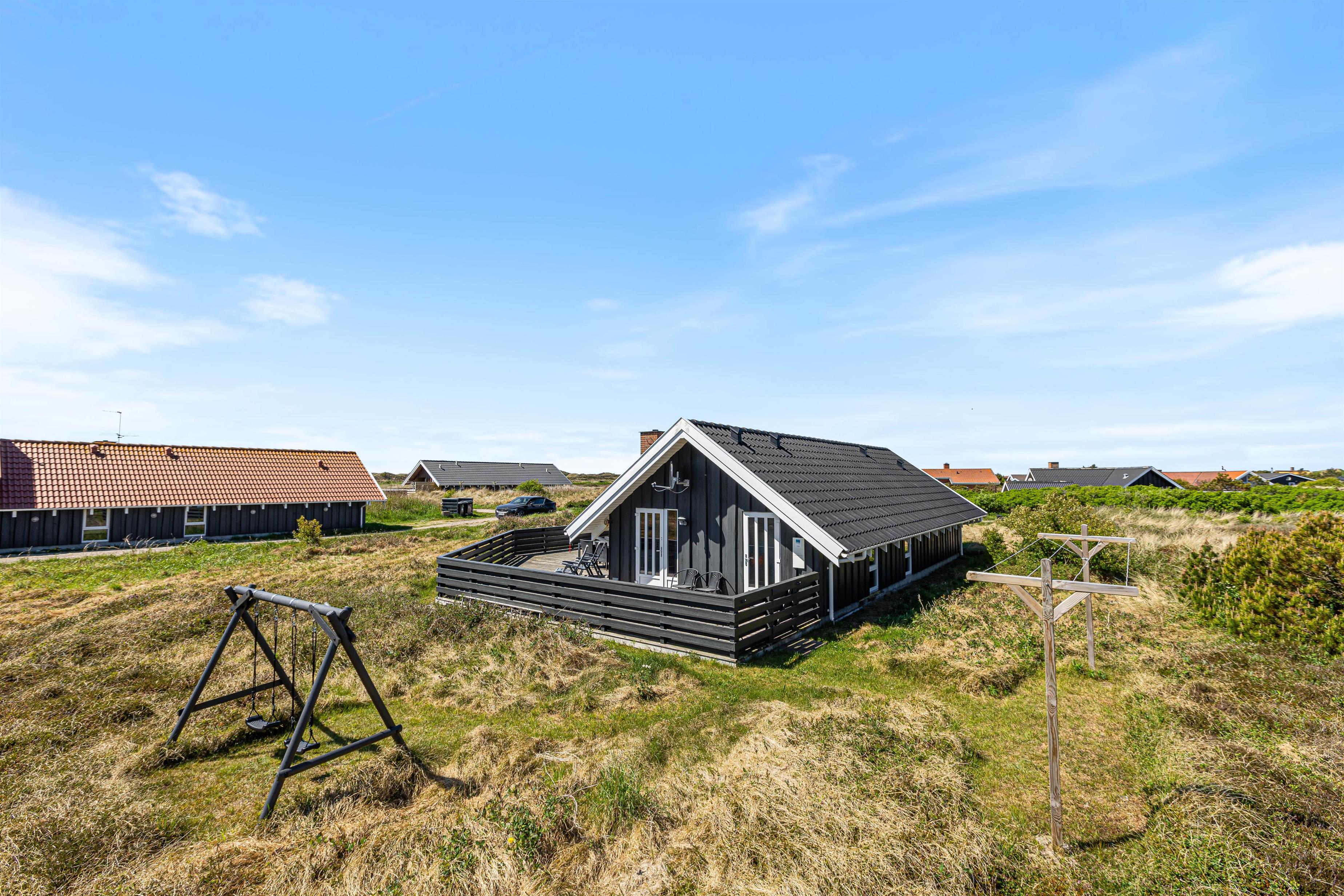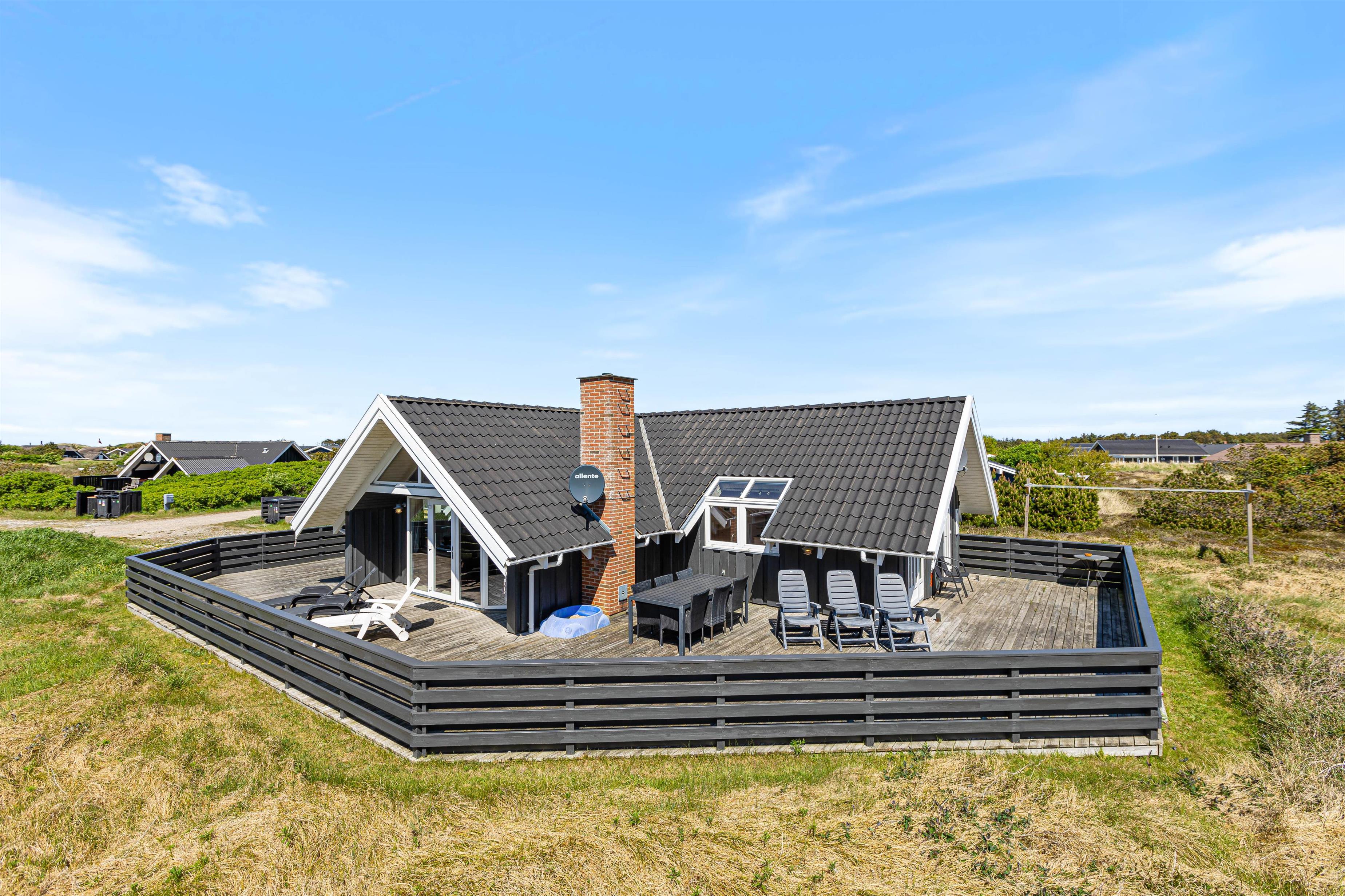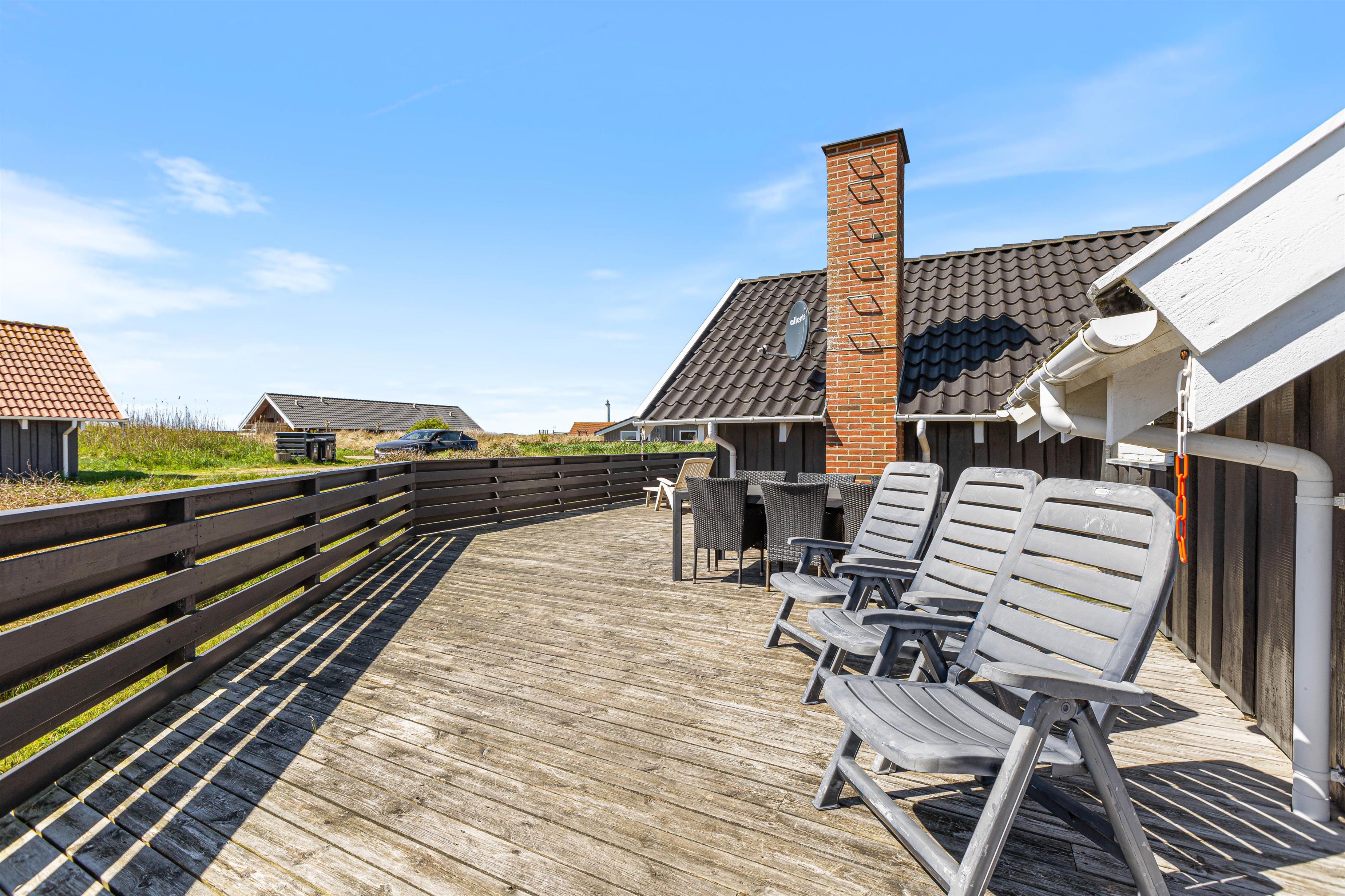Der er en stor skøn terrasse, der dækker både øst-, syd- og vestsiden af feriehuset. På den måde kan du nyde hele dagen lige fra morgenkaffen til en hyggelig grillaften på terrassen.
