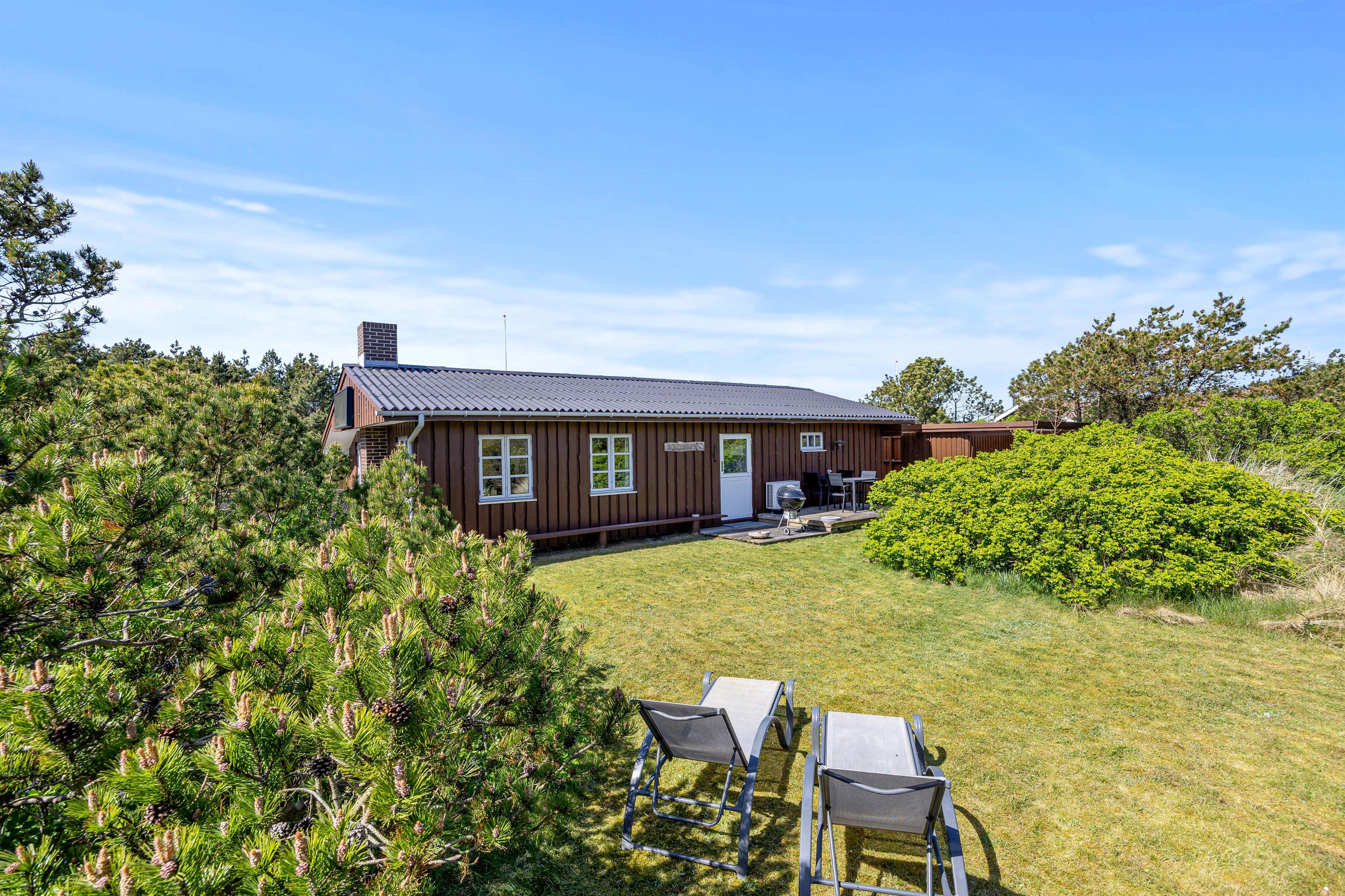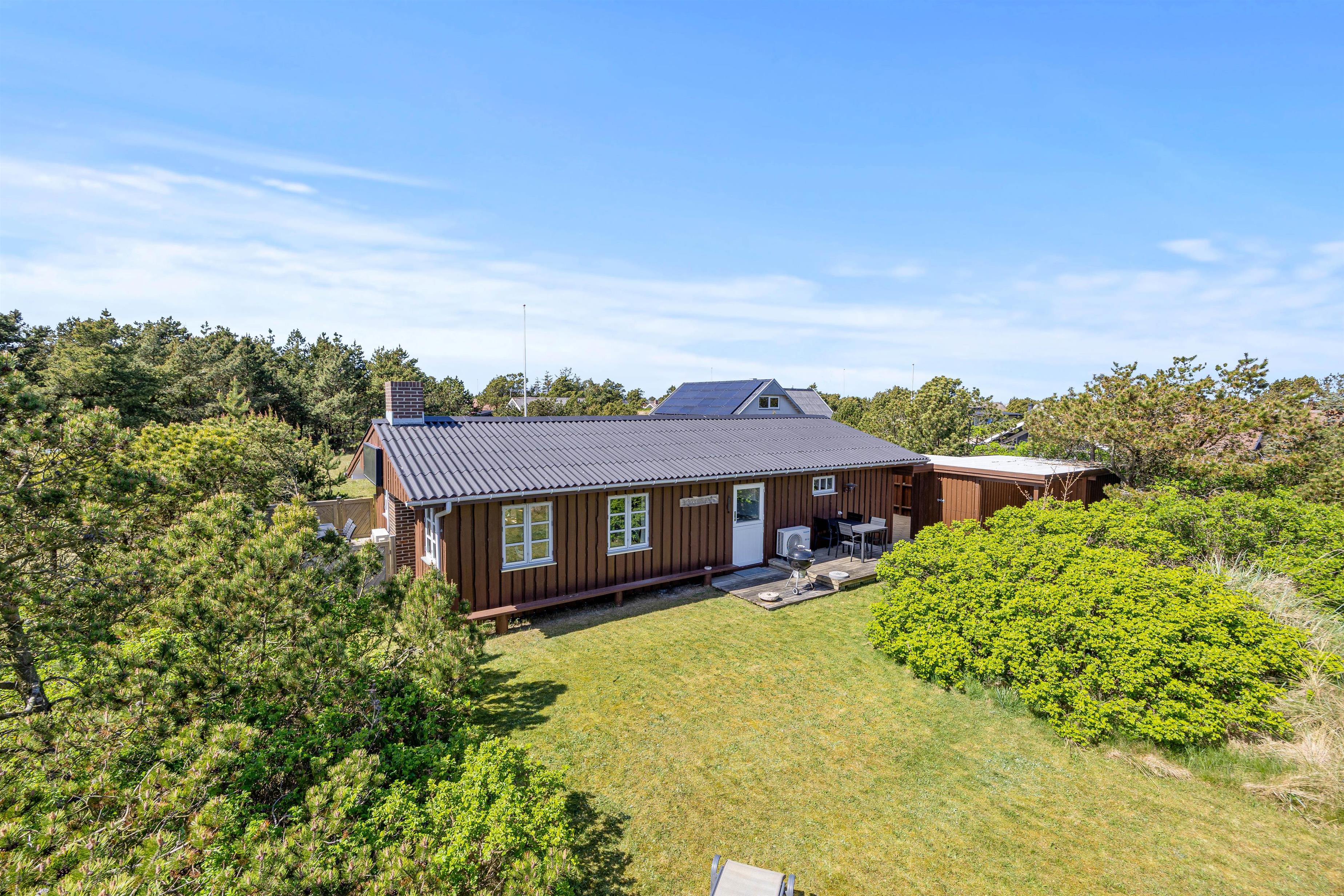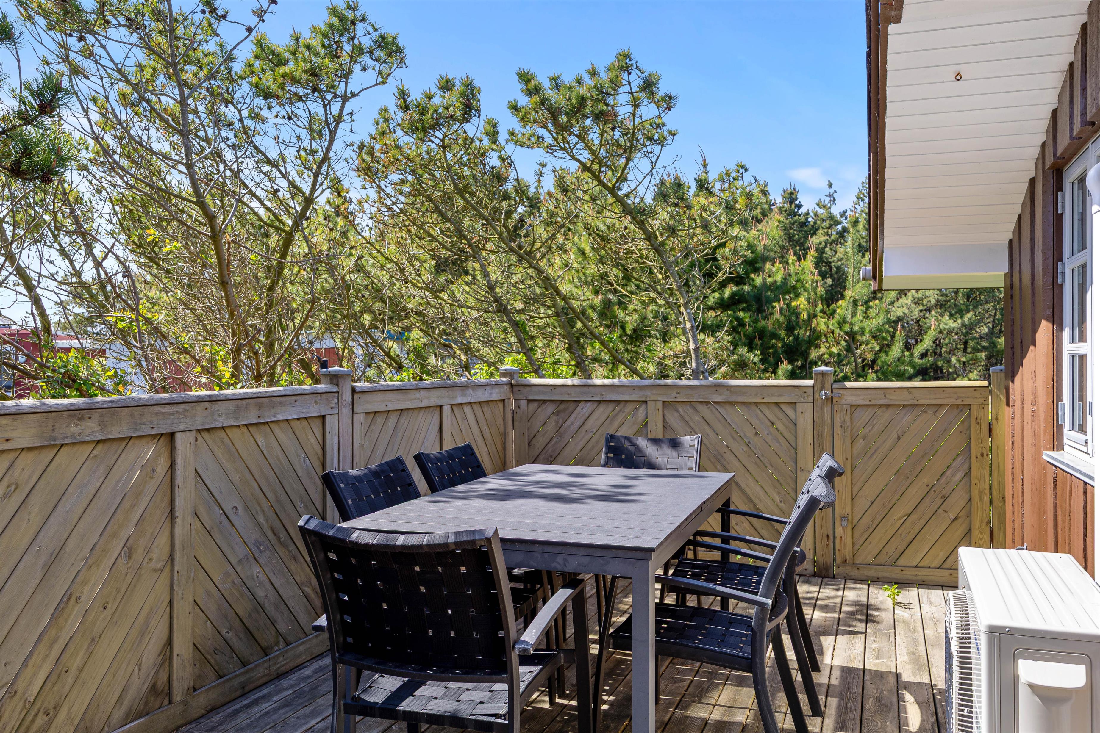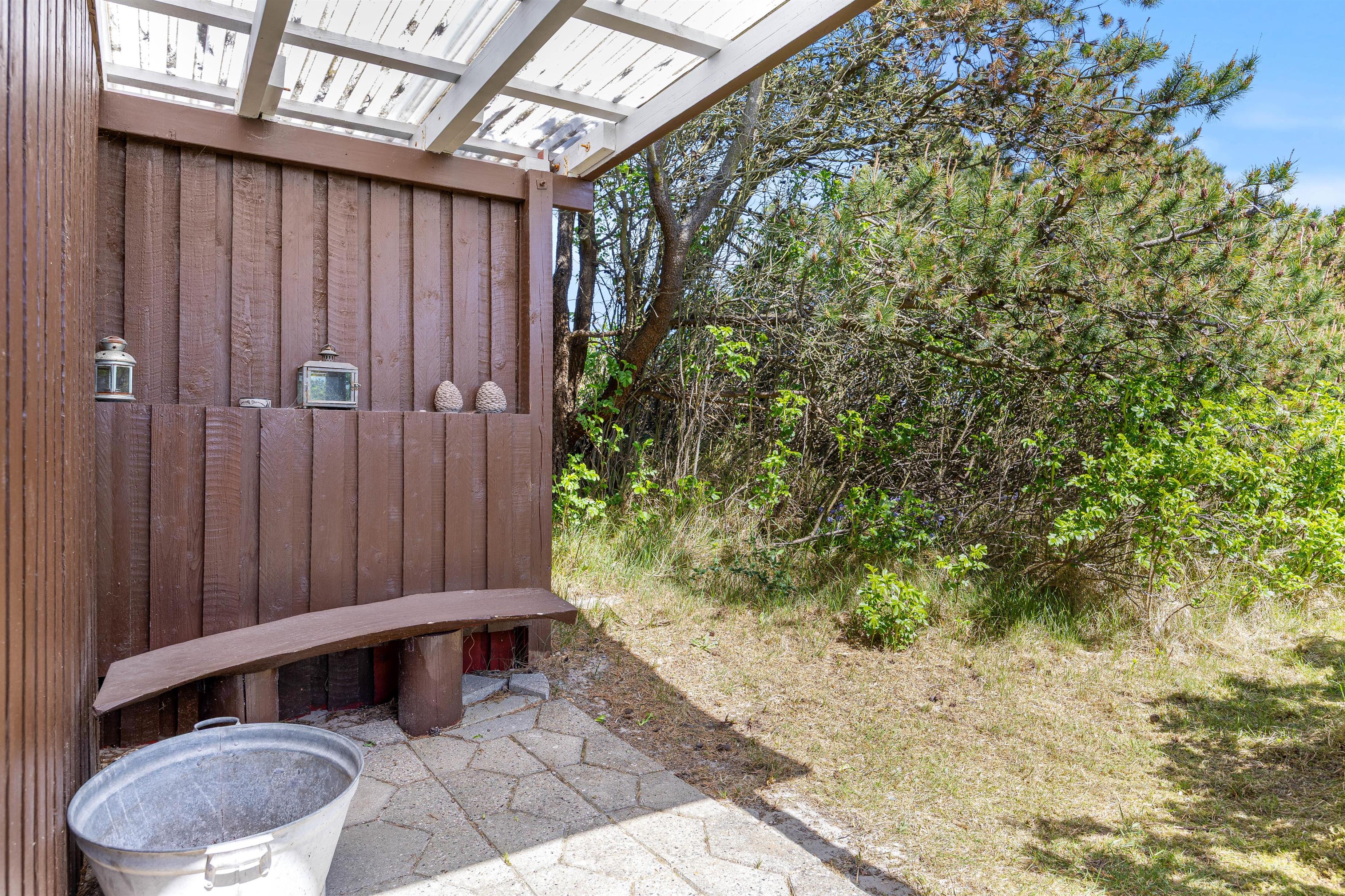Udendørs byder sommerhuset på en dejlig lukket terrasse med havemøbler og grill – ideel til både morgenkaffen og lange sommeraftener med aftensmad under åben himmel. Her kan I læne jer tilbage i ro og mag, mens børnene leger på den grønne plænegrund. Den lukkede terrasse er også et trygt sted for hunden at opholde sig.