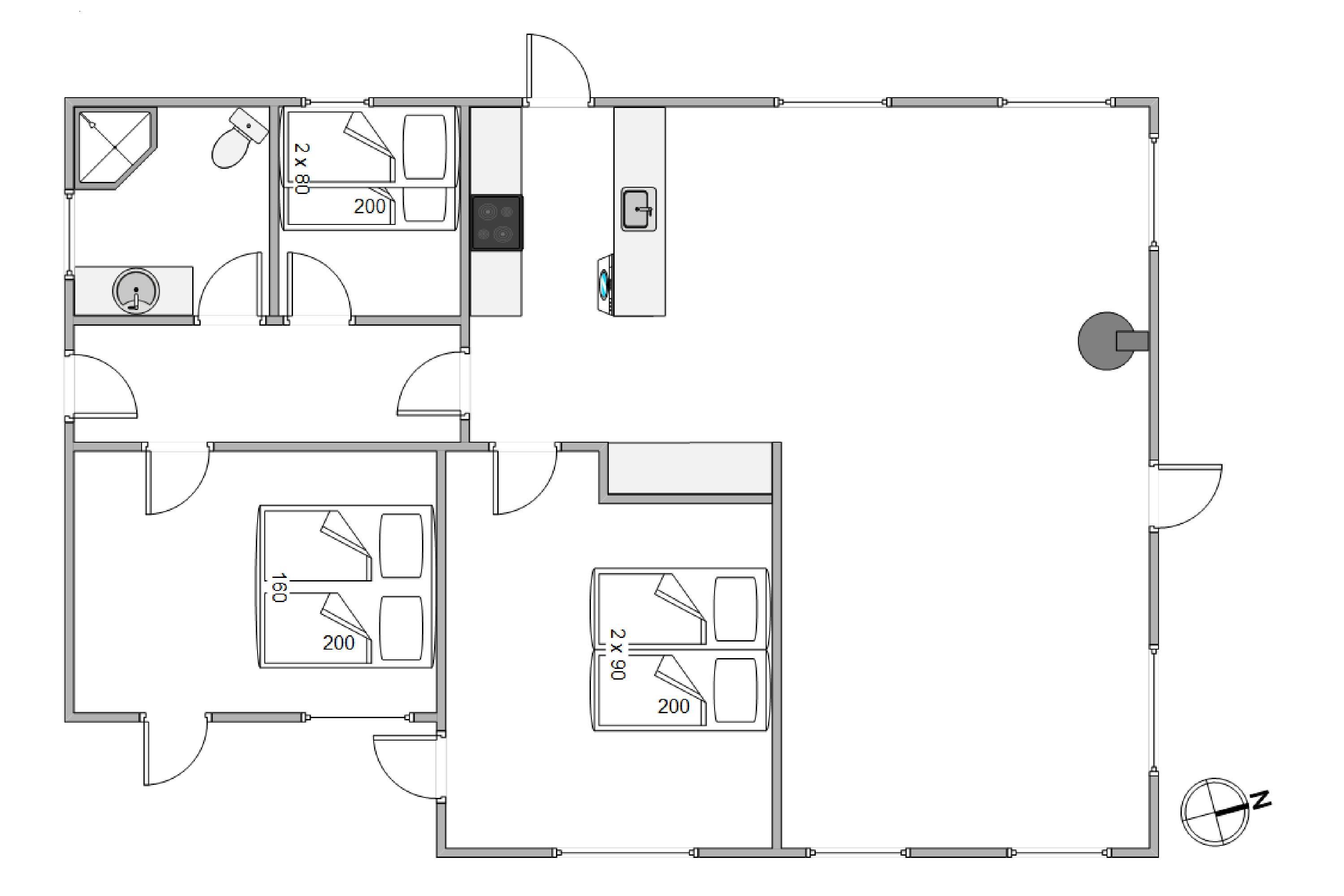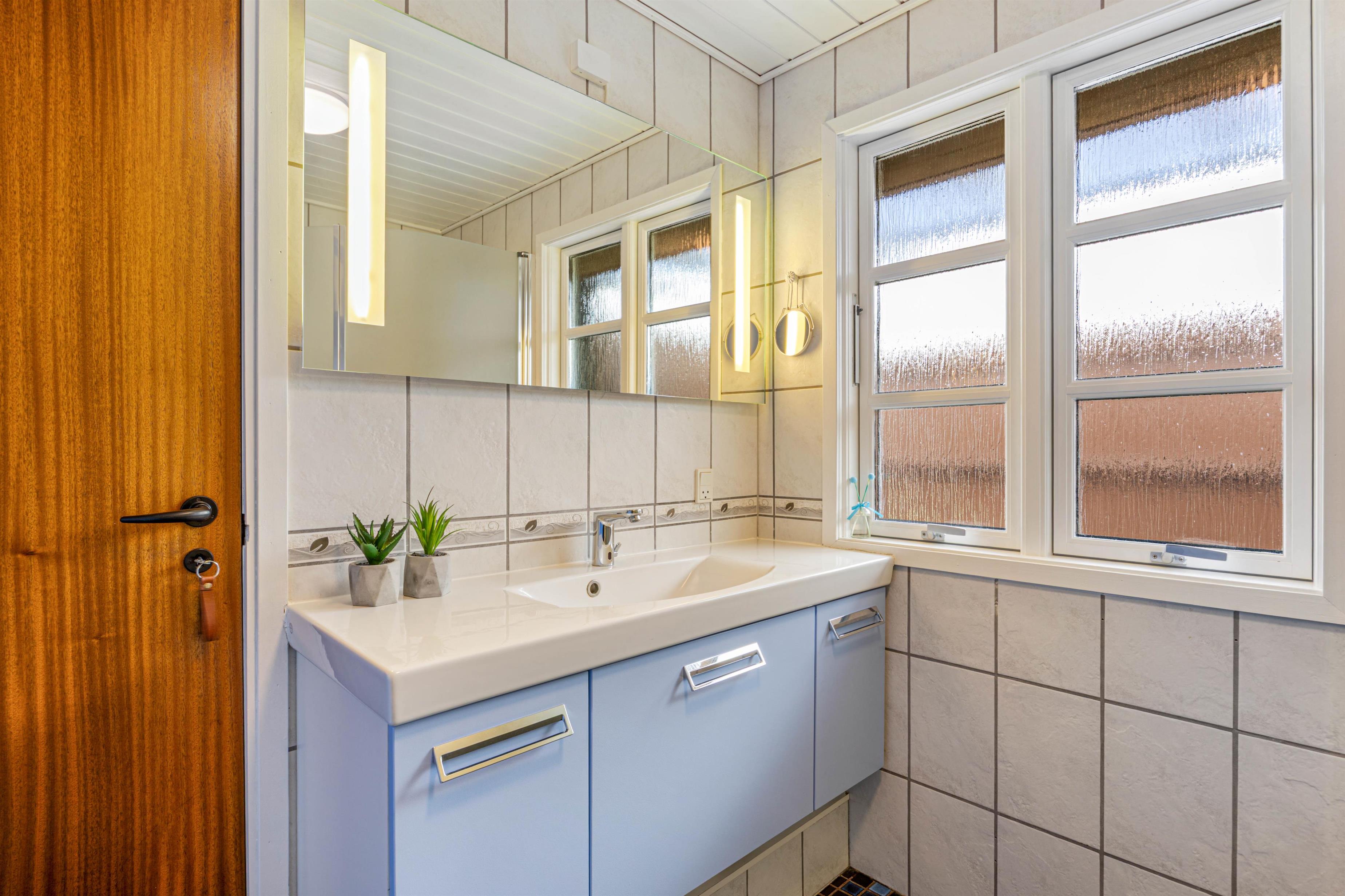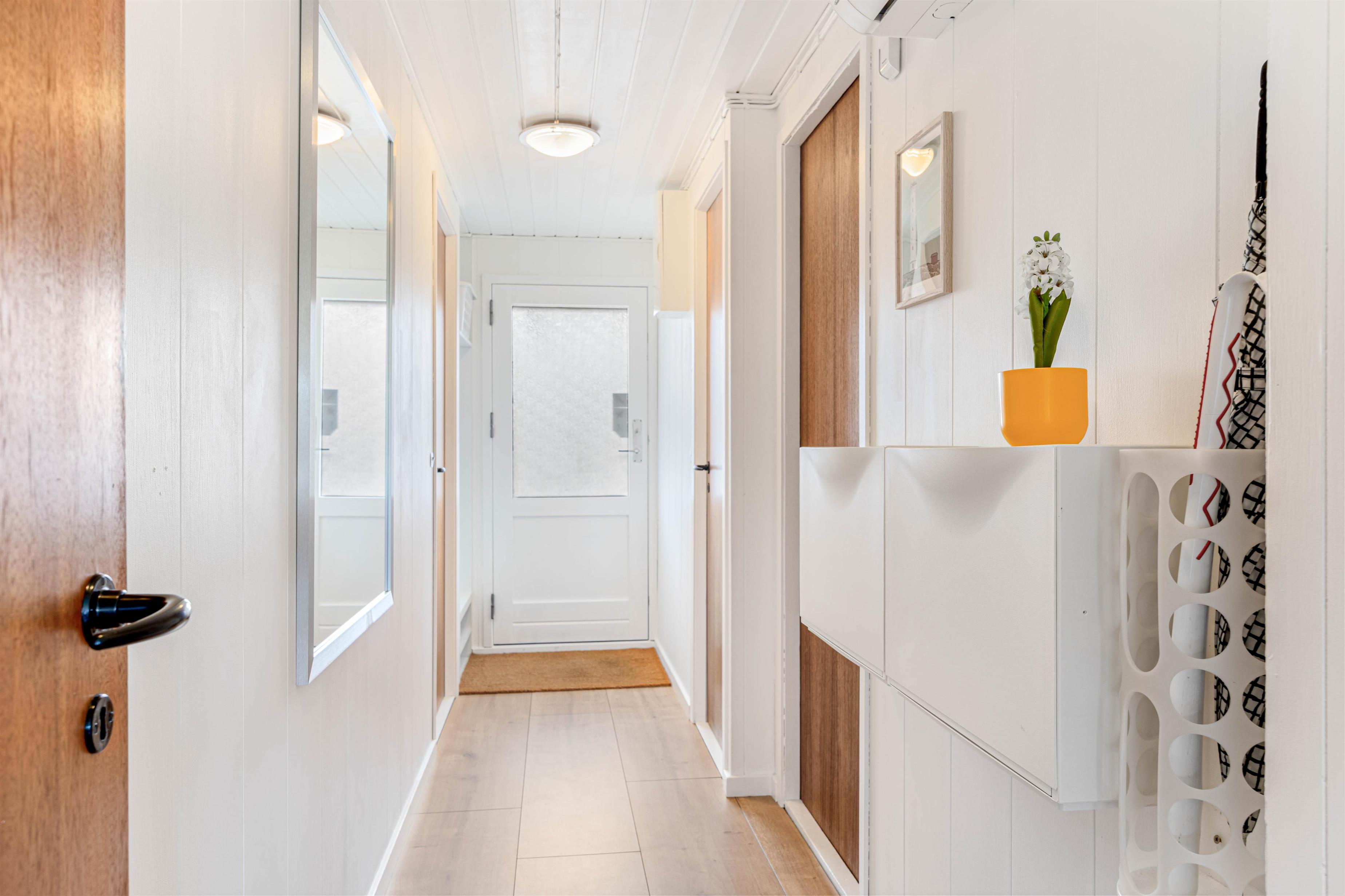 De 6 sovepladser fordeler sig på 3 soveværelser, som er indrettet med 2 dobbeltsenge og 1 køjeseng, så der er god plads til både forældre og børn. I sommerhuset finder I 1 badeværelse med gulvvarme. Vaskemaskinen gør det nemt at klare hverdagens små praktiske gøremål – selv på ferien.