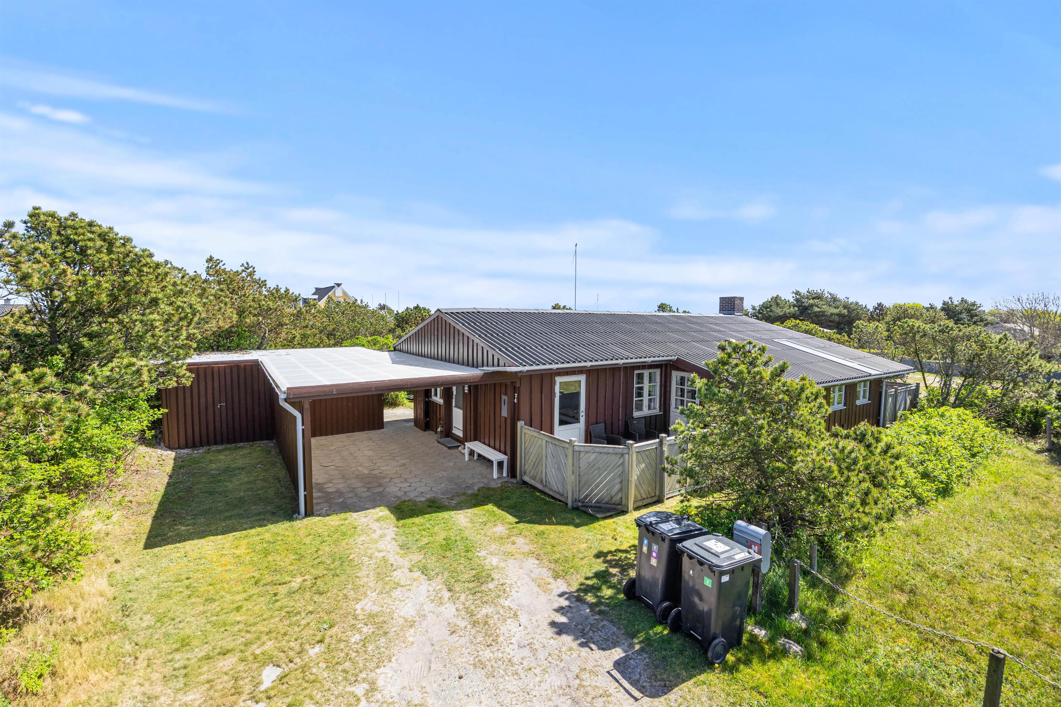 Sommerhuset ligger på Fyrmarken 74 i Nr. Lyngvig – et fredeligt ferieområde midt mellem Hvide Sande og Søndervig. Her kan I nyde den smukke omkringliggende natur og gå lange ture på naturstien langs klitlandskabet. I bor blot 1200 meter fra det brusende Vesterhav, hvor I kan sætte jer ned i sandet og slappe af eller bygge sandslotte.