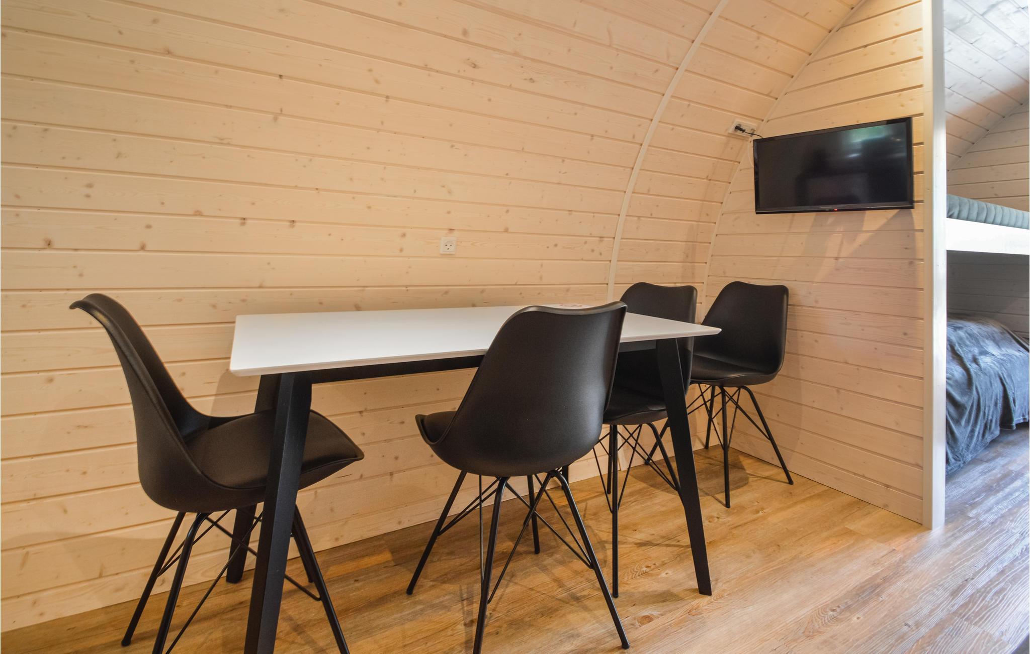 Tøndehytterne er godt indrettet med 2 køjesenge, 1 dobbeltseng, spisebord med 6 stole samt køleskab med fryser, miniovn og elkeddel. Og et badeværelse med bruser. Lejeprisen er inkl. Forbrug.