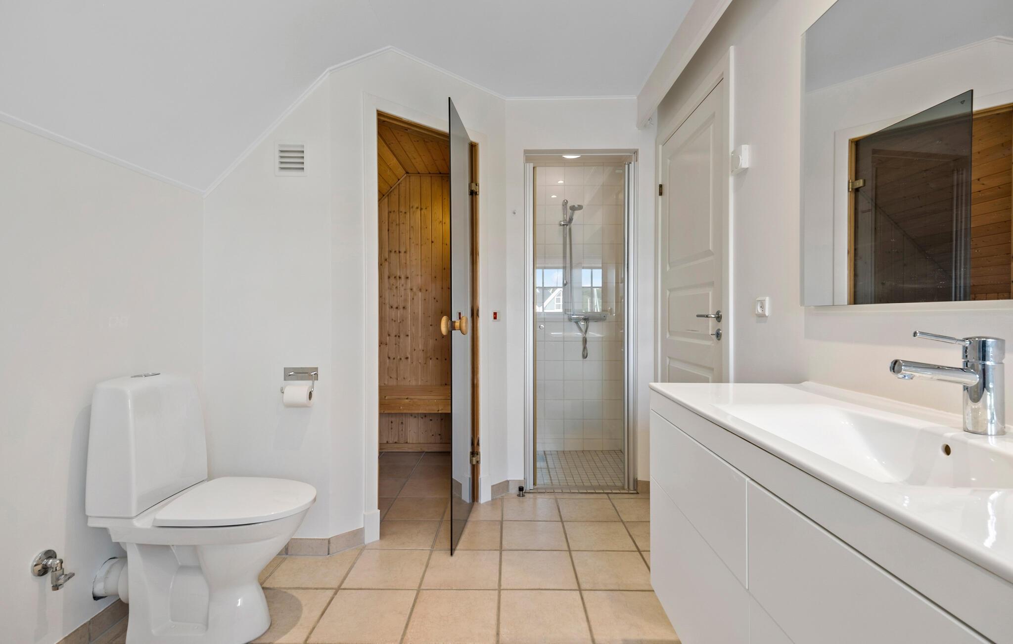 Badeværelse (nr. 1) - WC. Varmt og koldt vand. Bruser