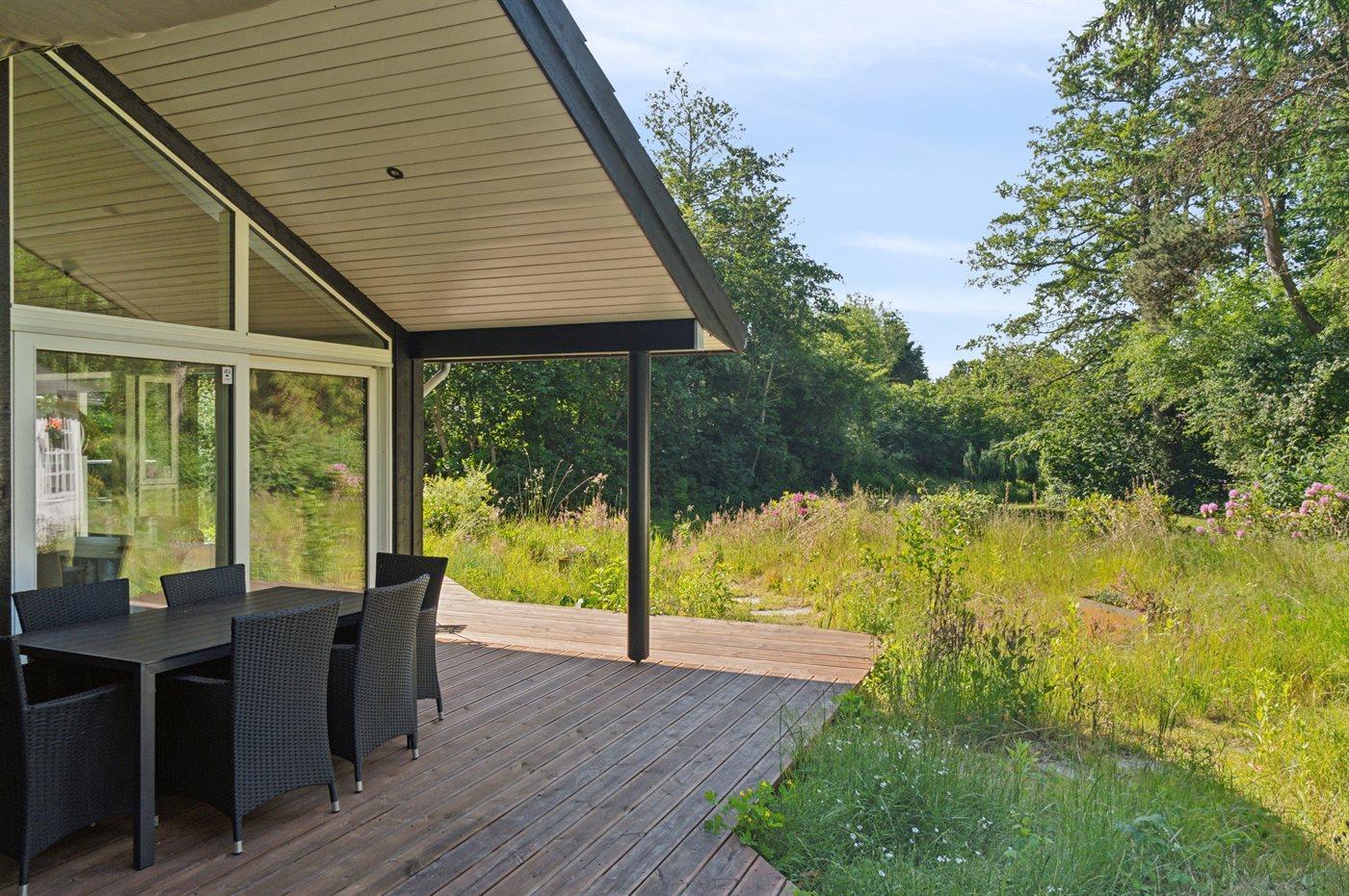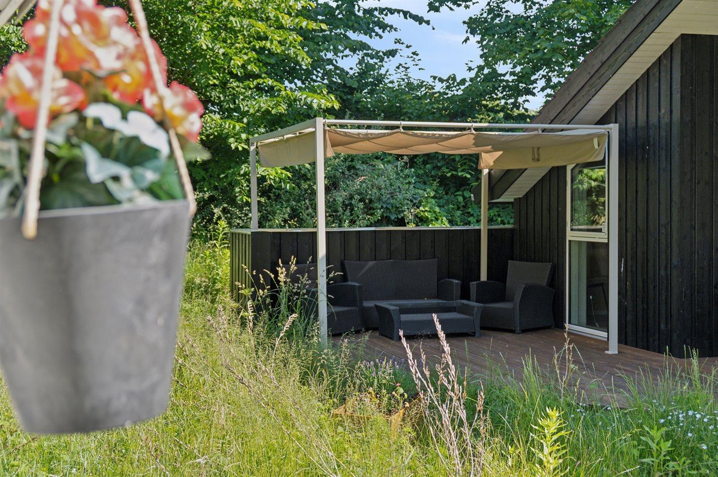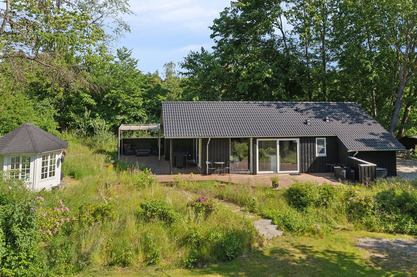 Ferieboligen er beliggende på en 1984 m² stor havegrund. Der er 800 m til havet. Der er en badebro i nærheden. Nærmeste forretning er beliggende i en afstand af 1450 m. Der er en golfbane i en afstand af 3000 m. Til ferieboligen hører 64 m² terrasseareal. Desuden er der 21 m² overdækket terrasse. Shelter. Grill til rådighed. Der er installeret stik til opladning af elbil. Parkering ved ferieboligen.