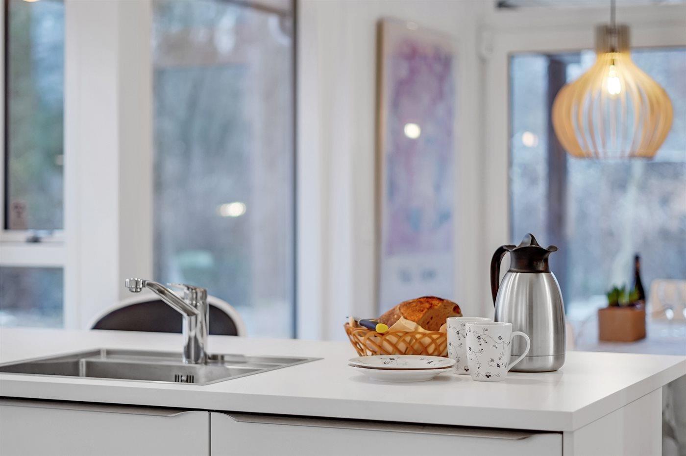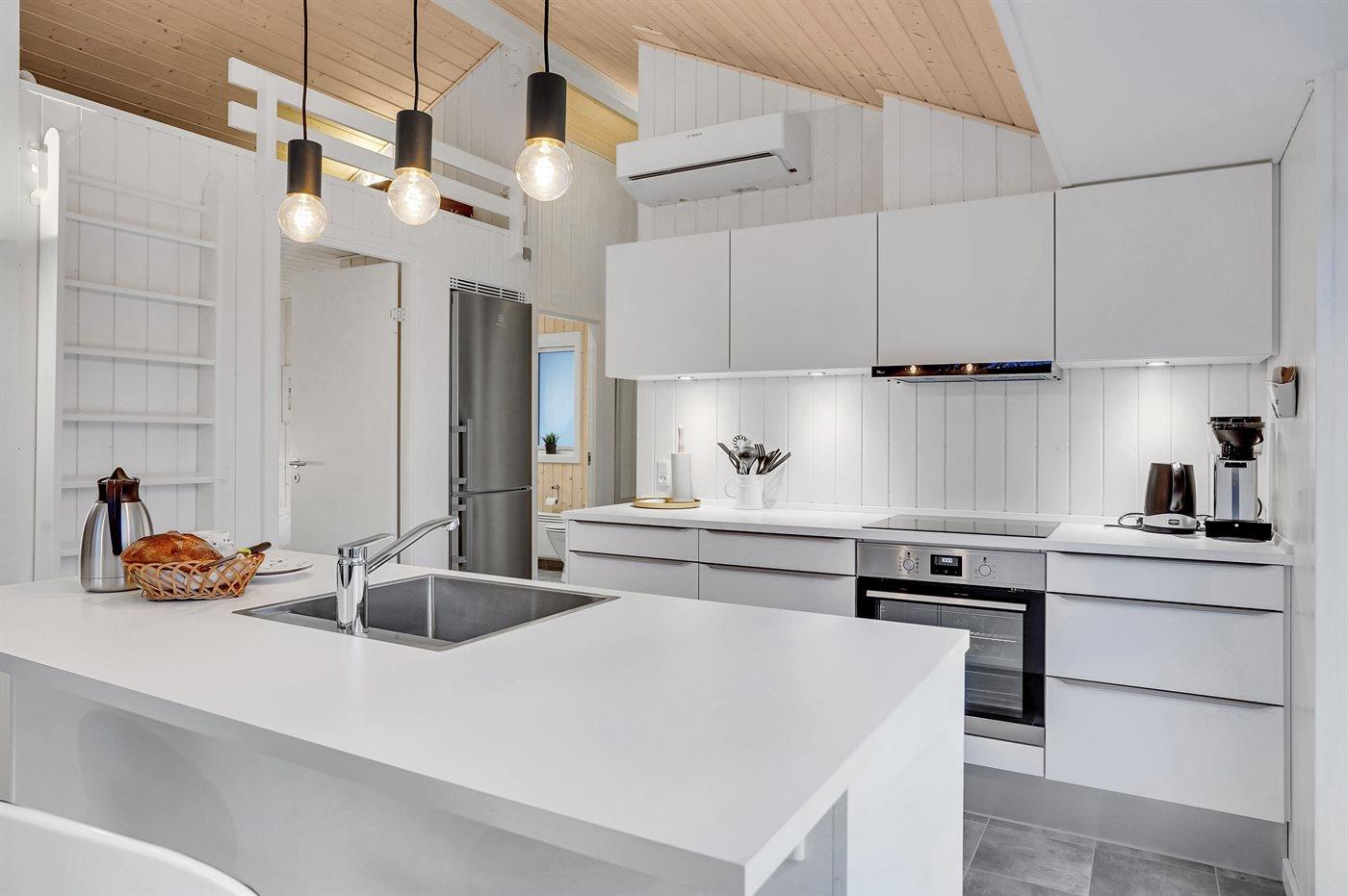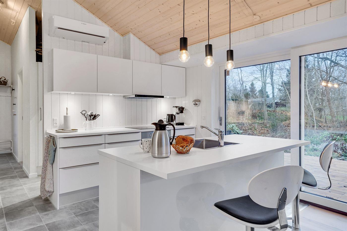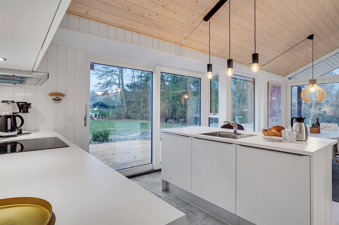 Køkkenet er udstyret med 1 køleskab. Der er 4 keramiske kogeplader, varmluftovn, mikrobølgeovn samt opvaskemaskine.